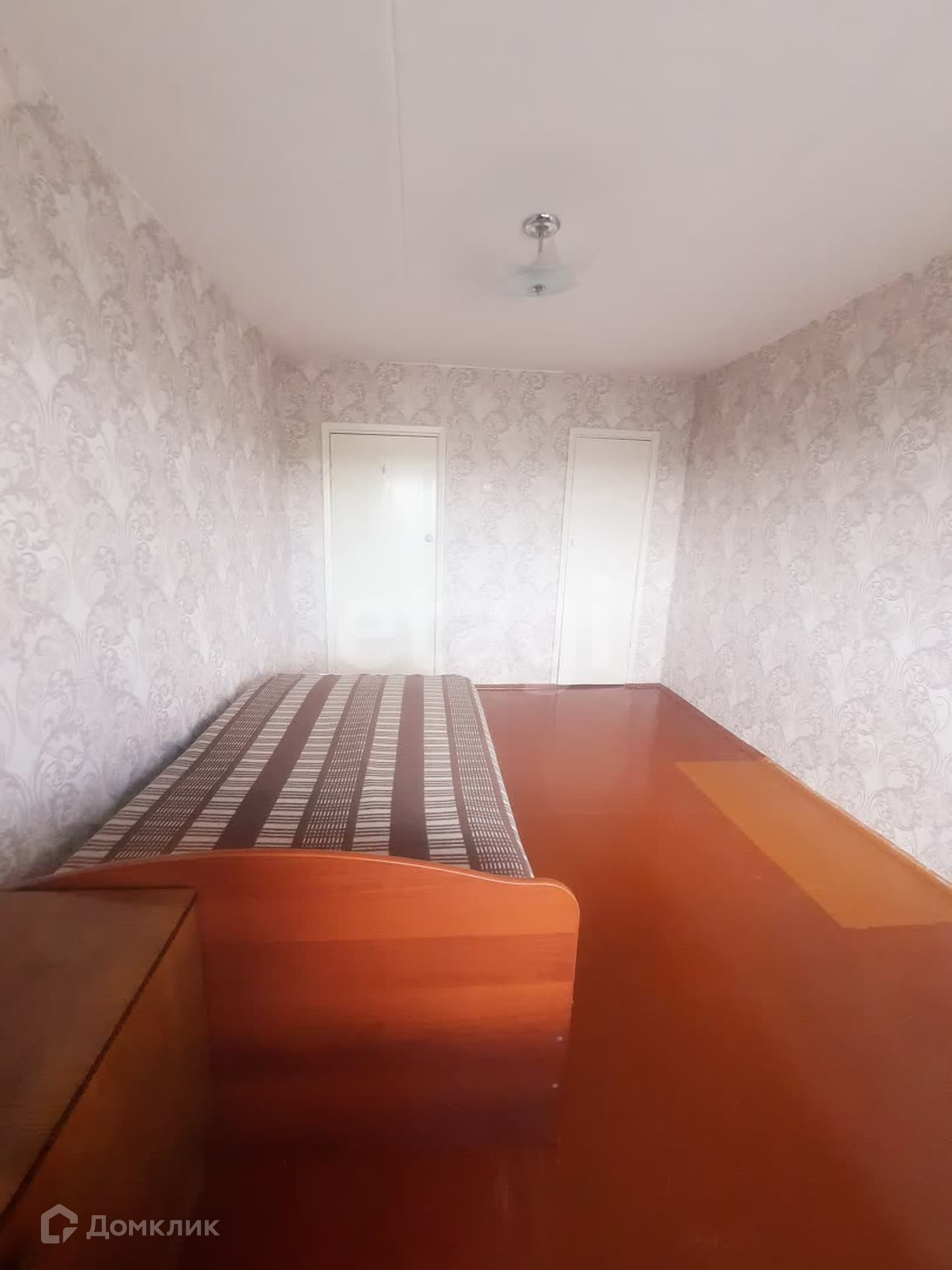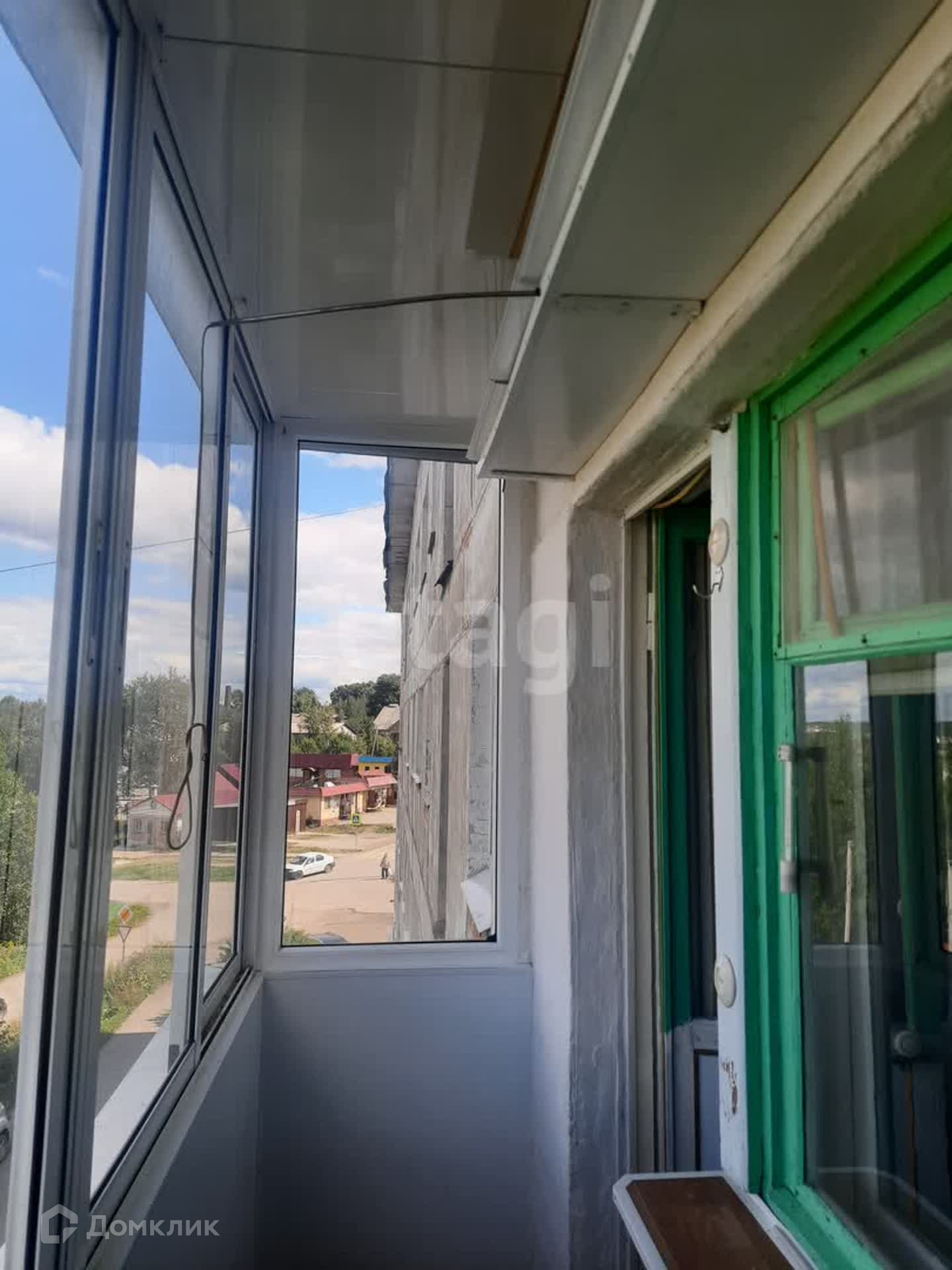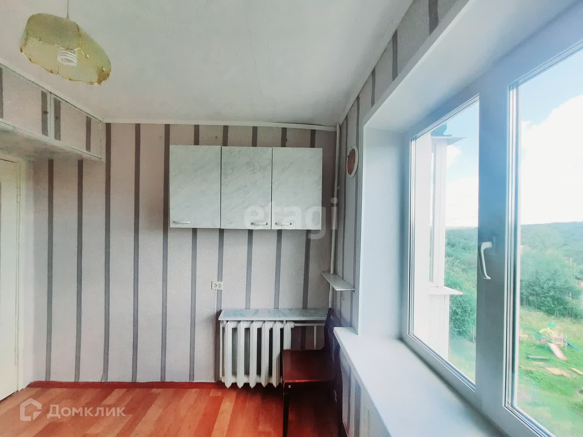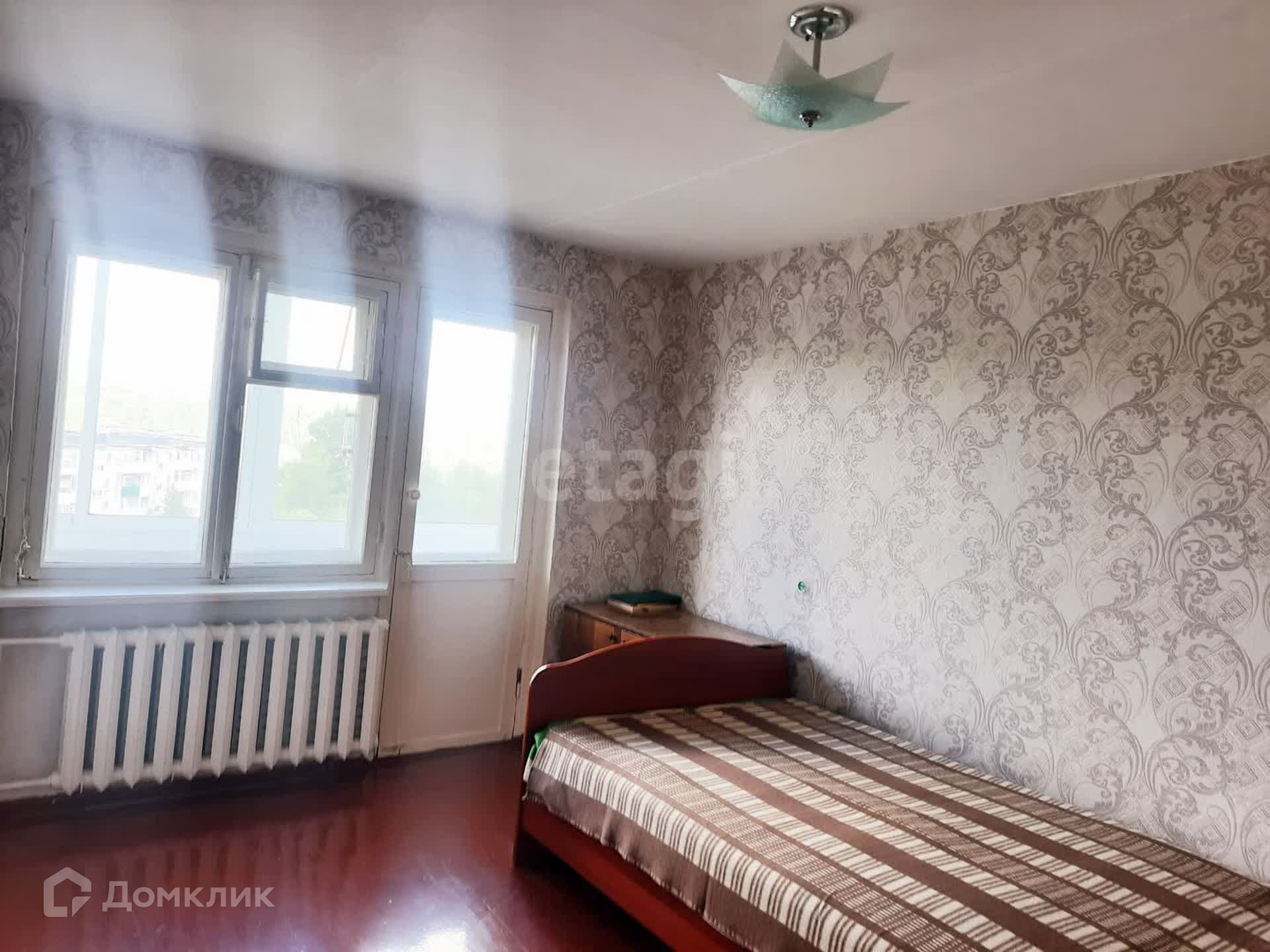 Вторая комната: окно – дерево, стены – обои, потолок – побелка. Пол ЛДСП. Балкон ПВХ.