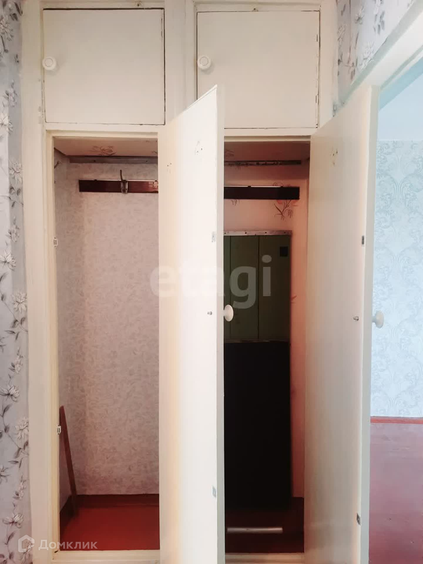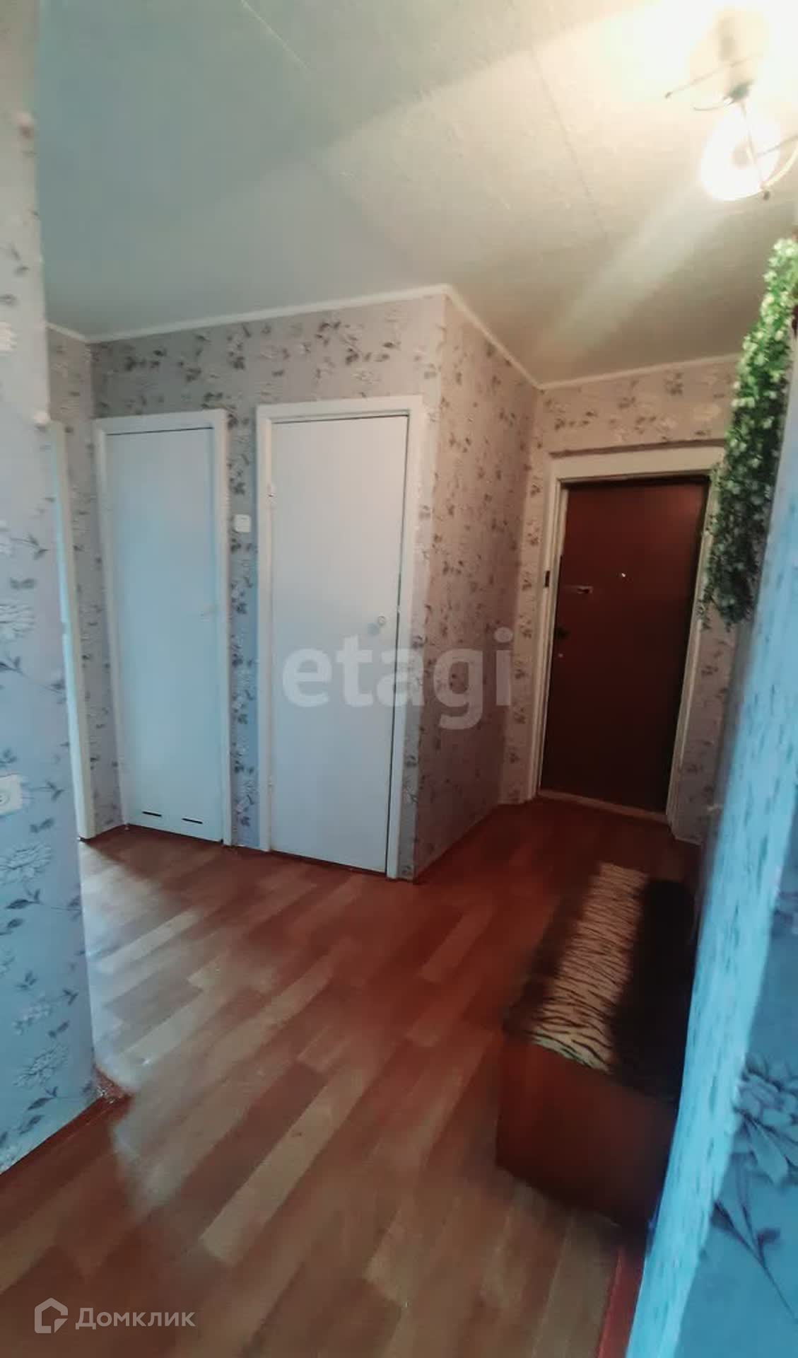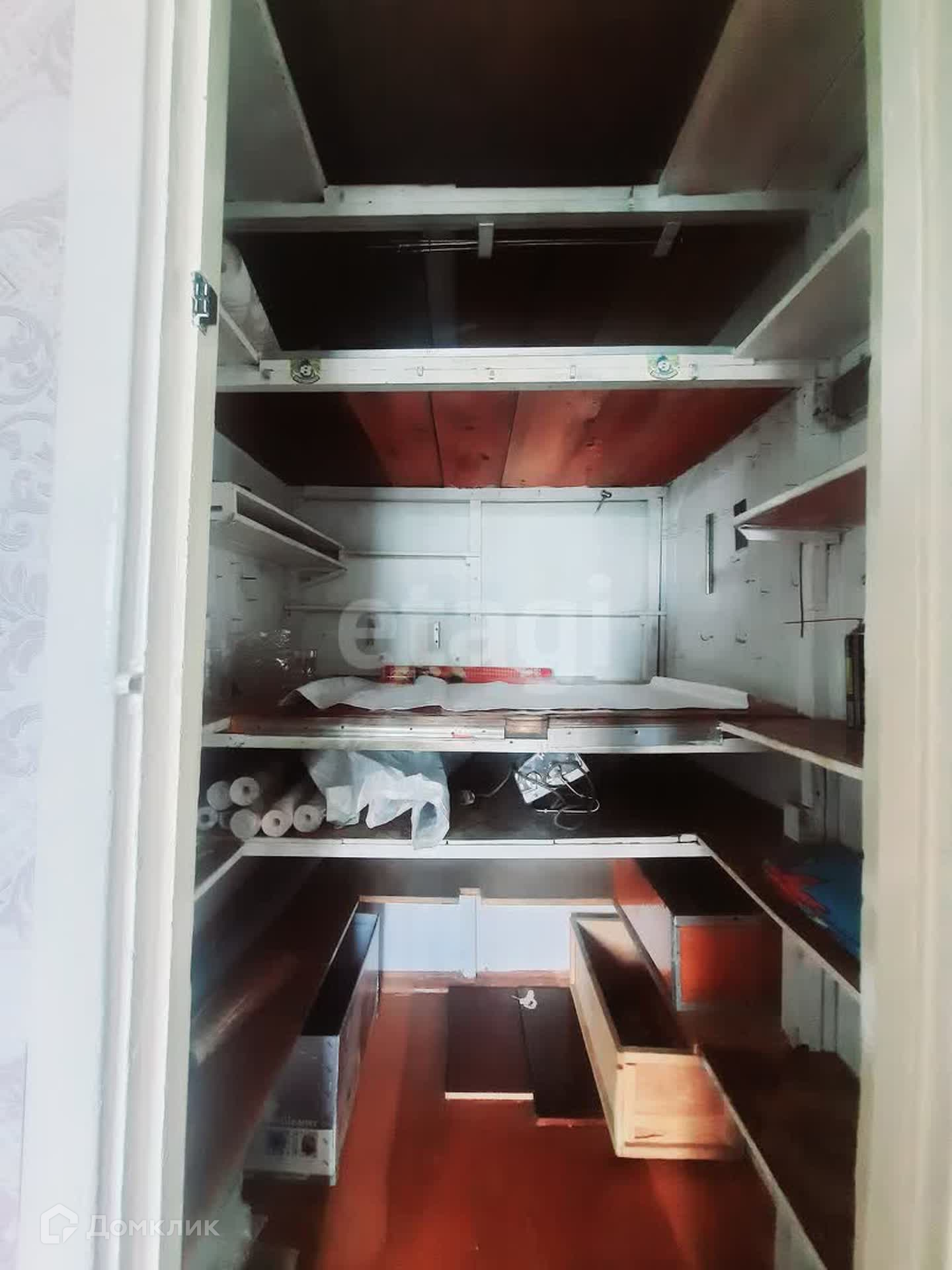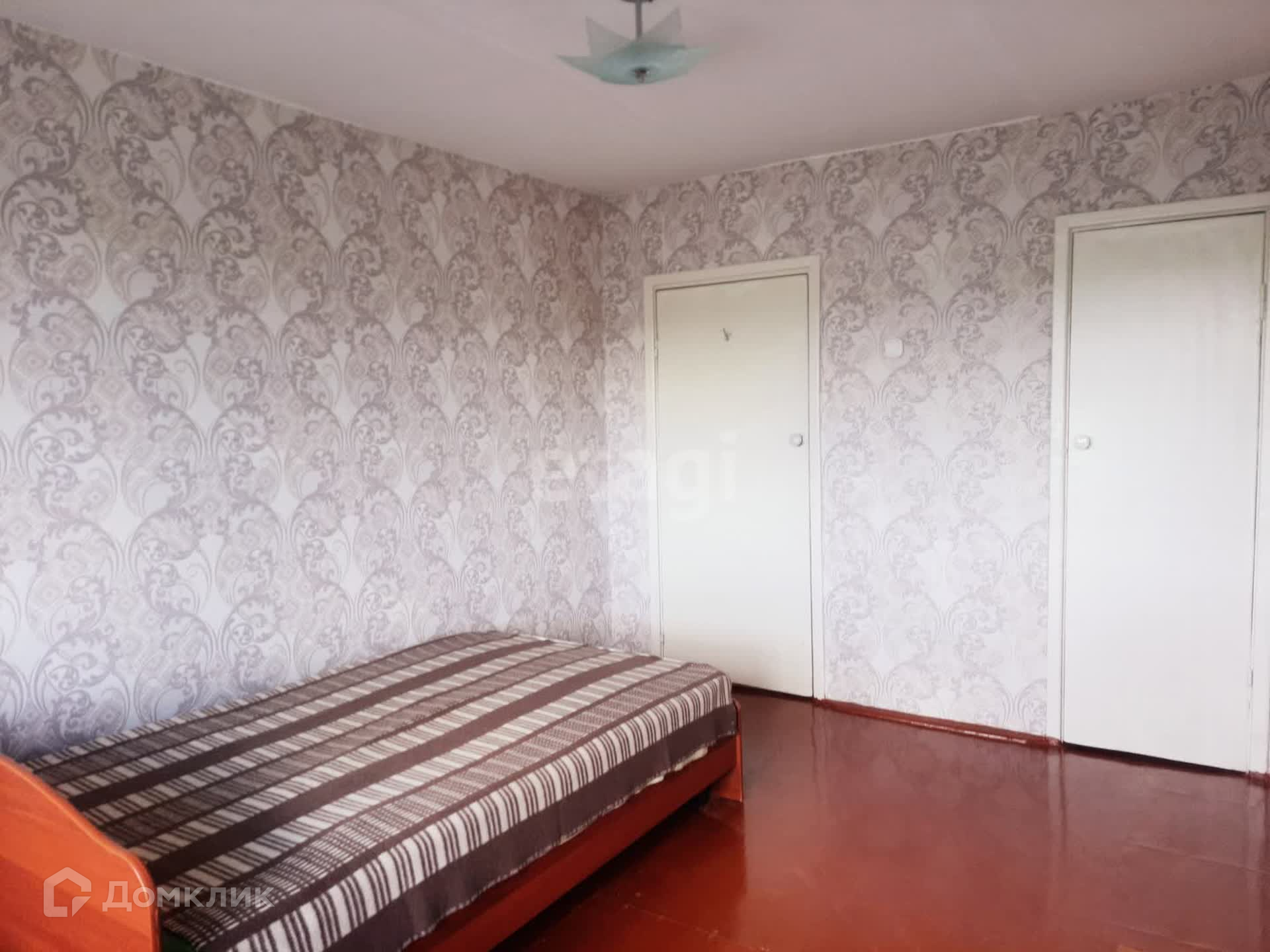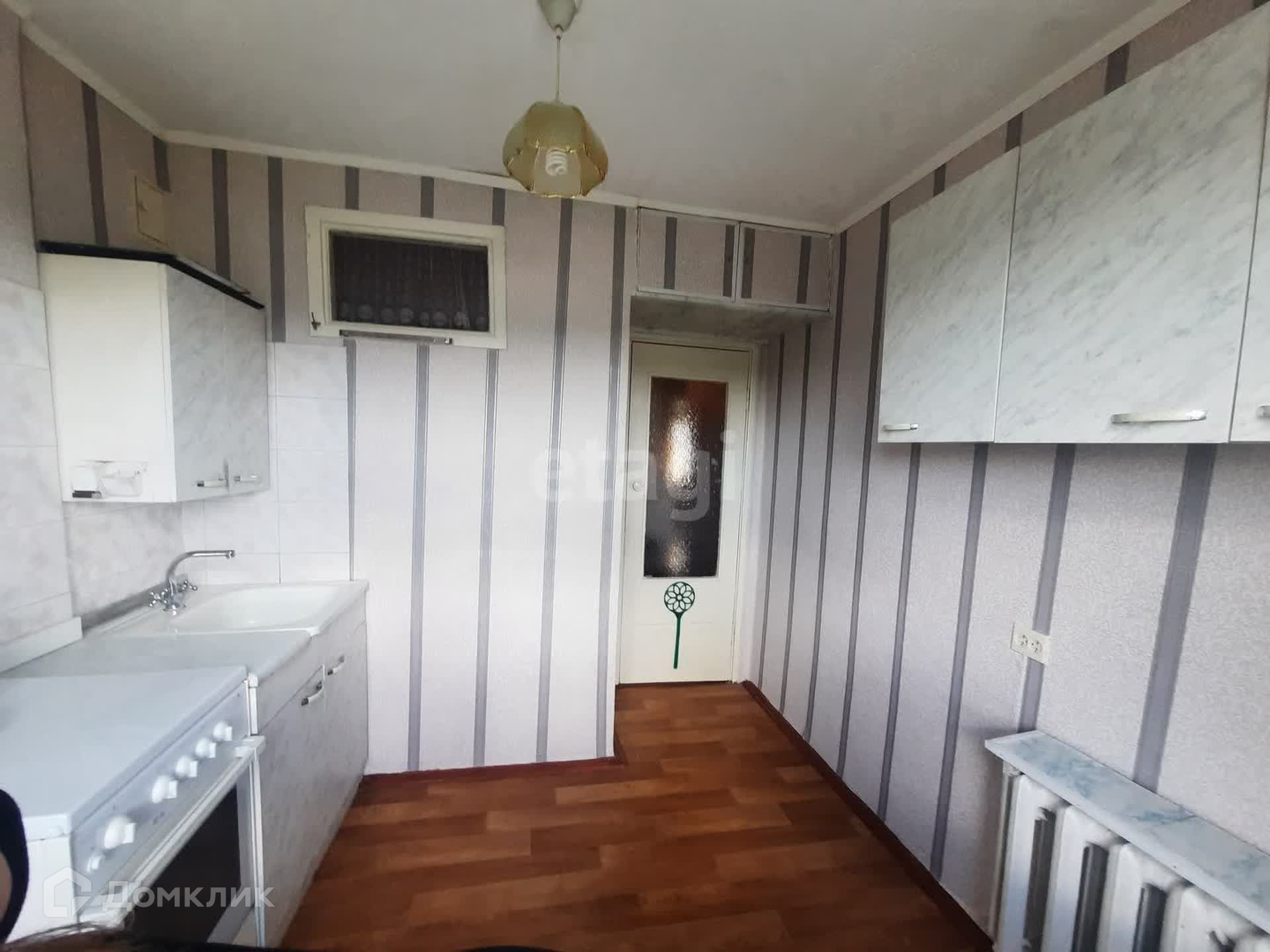 Вторая комната: окно – дерево, стены – обои, потолок – побелка. Пол ЛДСП. Балкон ПВХ.