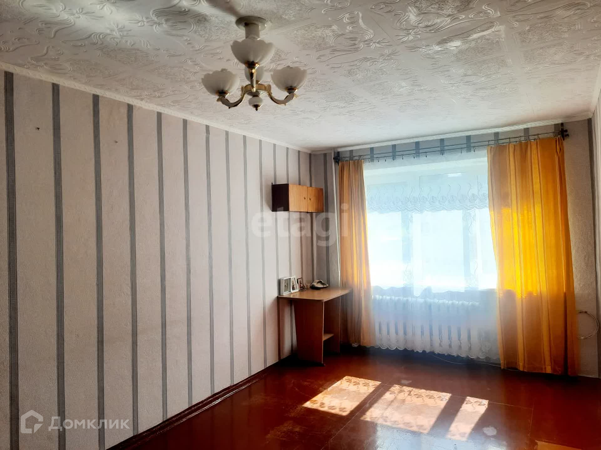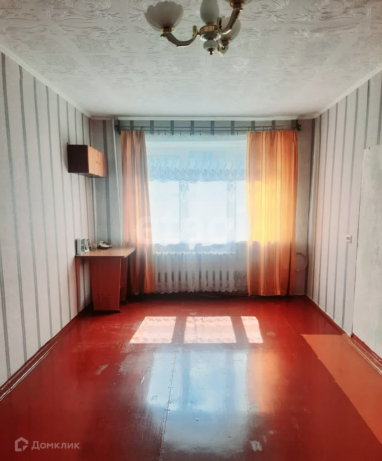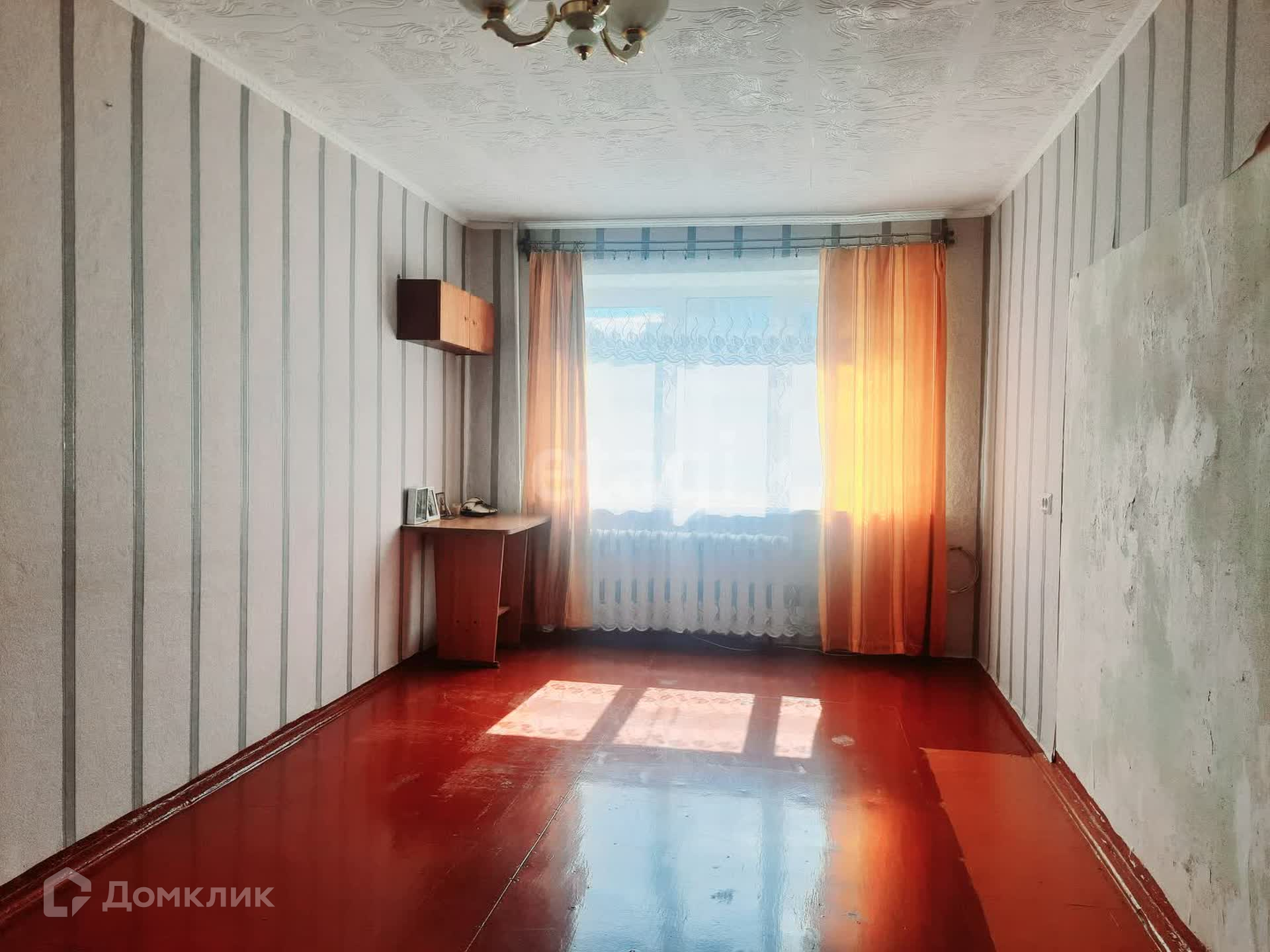 Первая комната: окно ПВХ, стены - обои, потолок – потолочная плитка. Пол ЛДСП.