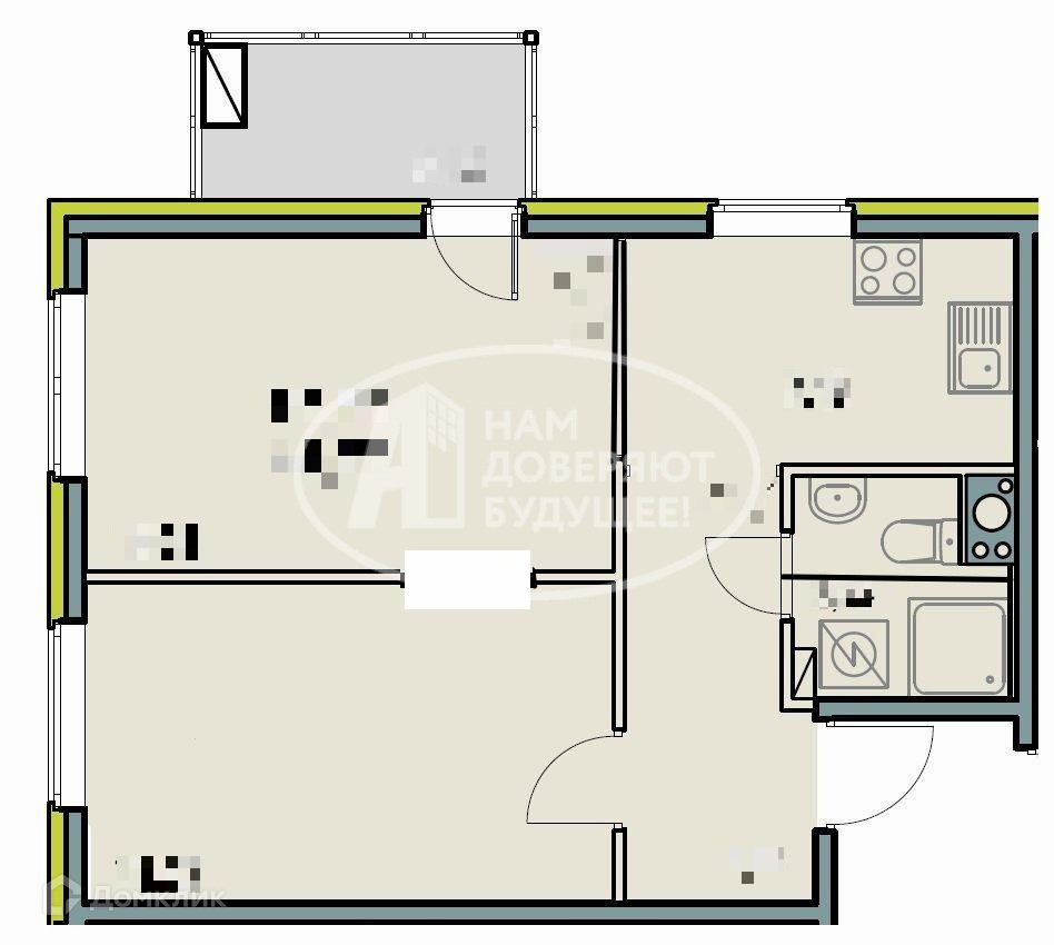 Общая площадь 44.3 м2