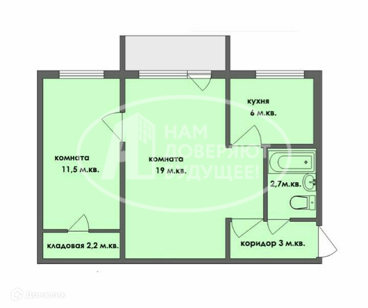 Балкон, лоджия 1 балкон