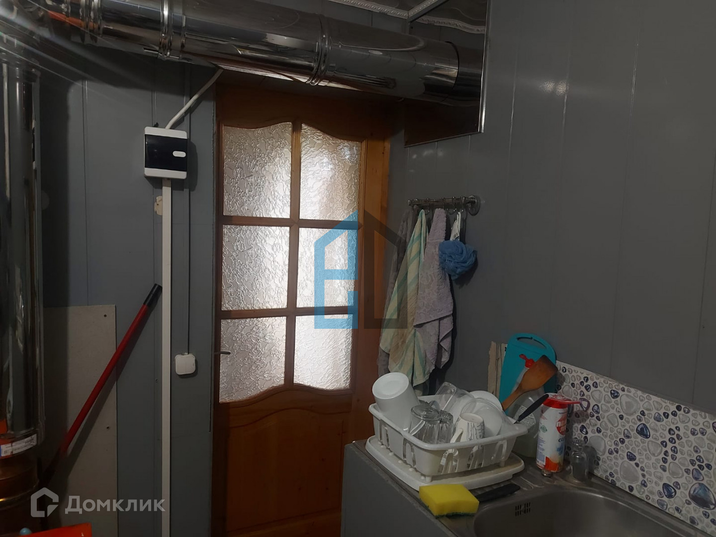 В доме 2 комнаты - кухня совмещенная с гостиной и спальня. В ванной комнате - бойлер, котел, туалет, ванная. Котел комбинированный  для отопления, работает на электричестве и на дровах по выбору.