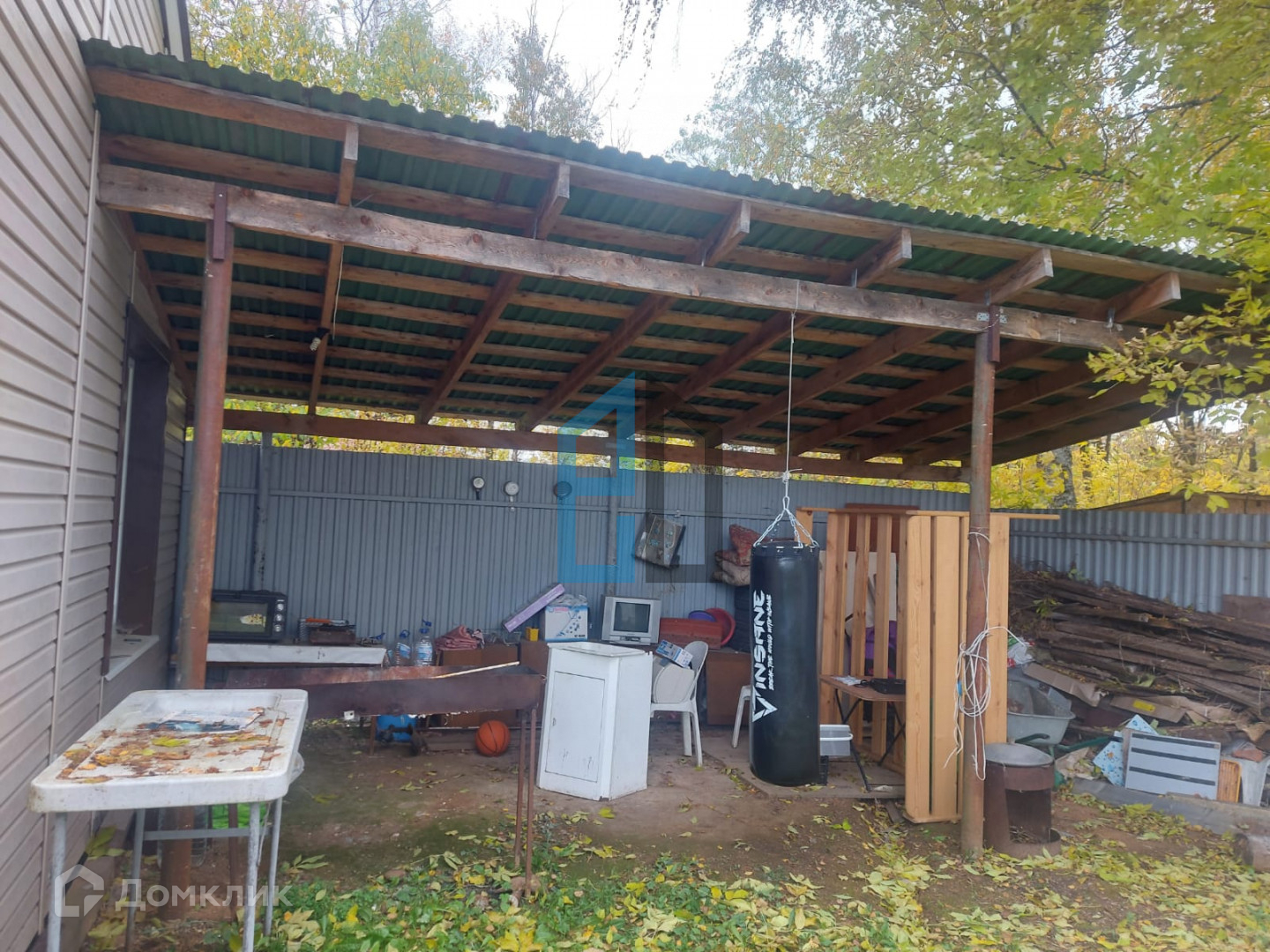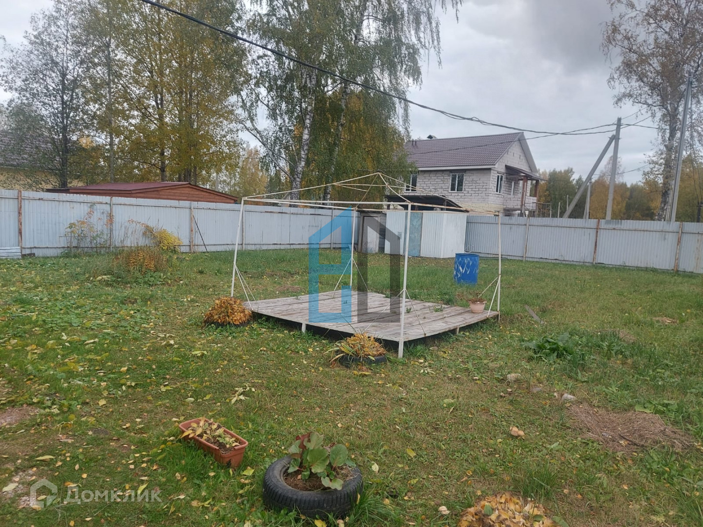 Участок огорожен забором из профлиста.