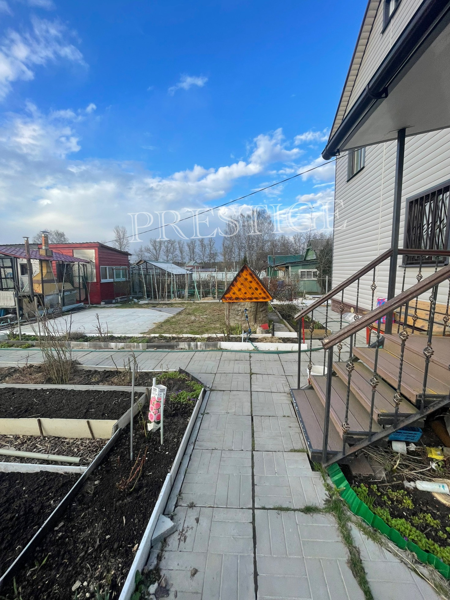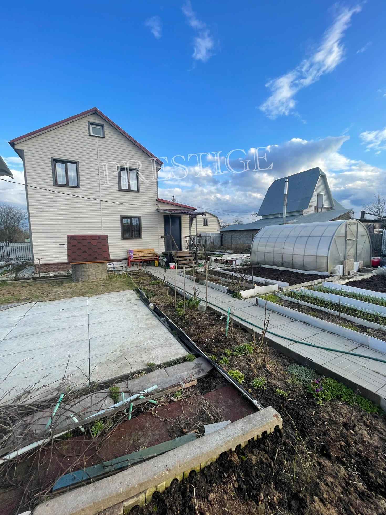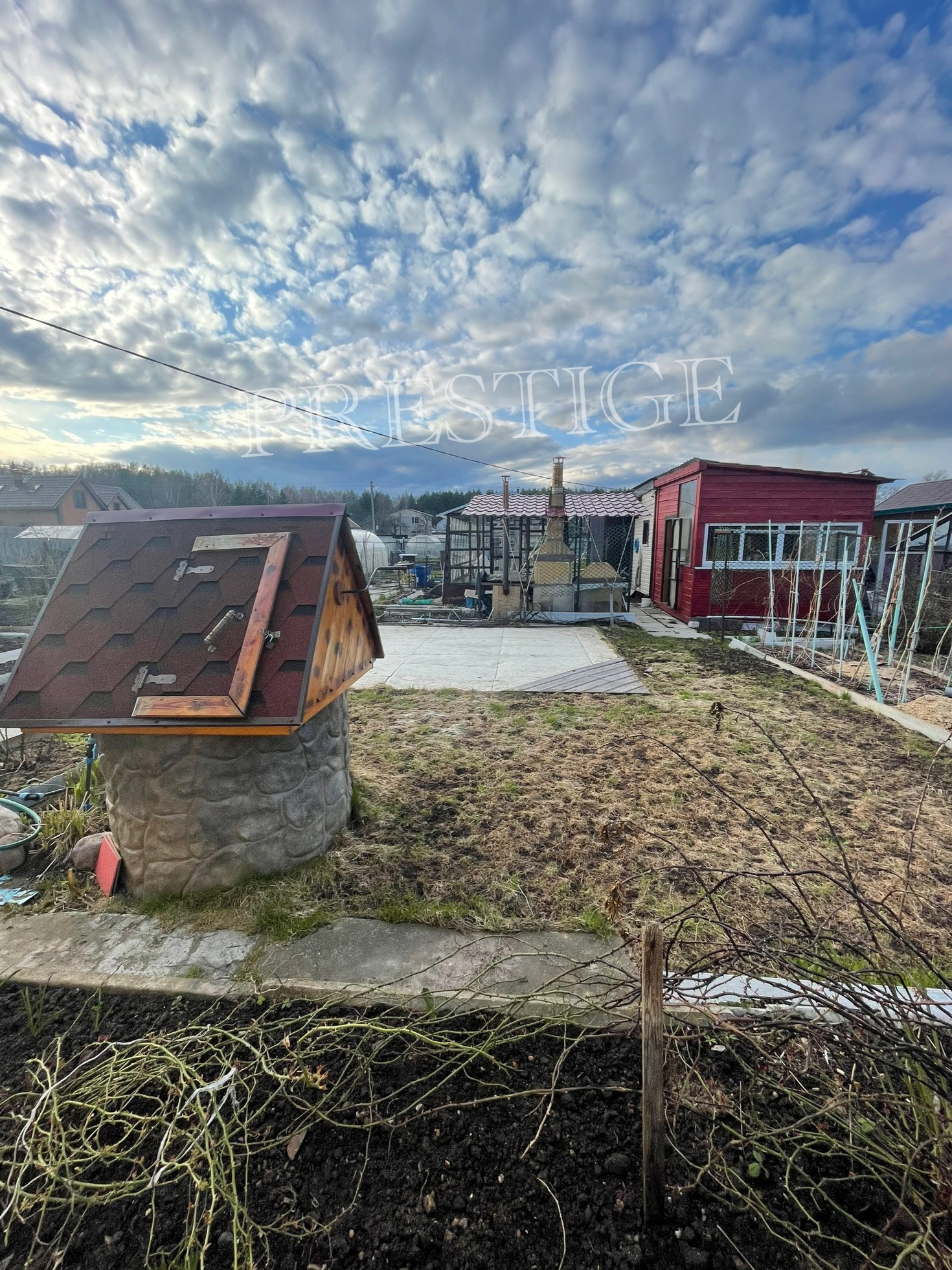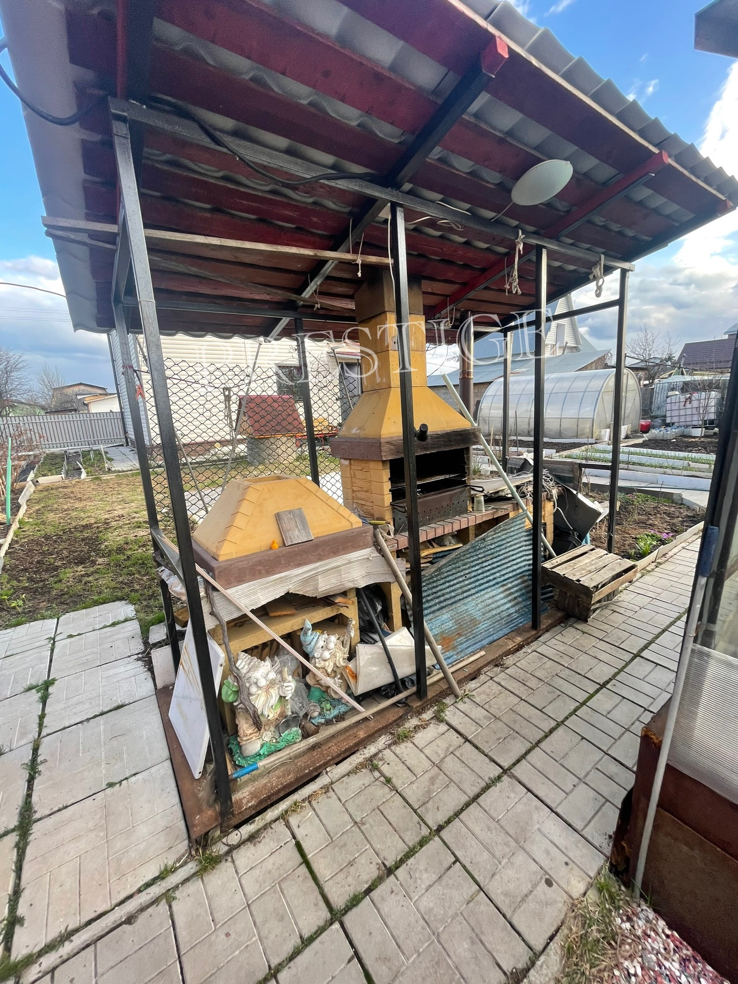 На участке стоит хоз блок + 2 теплицы + уличный туалет(и туалет в доме) + летняя кухня + зона барбекю.
