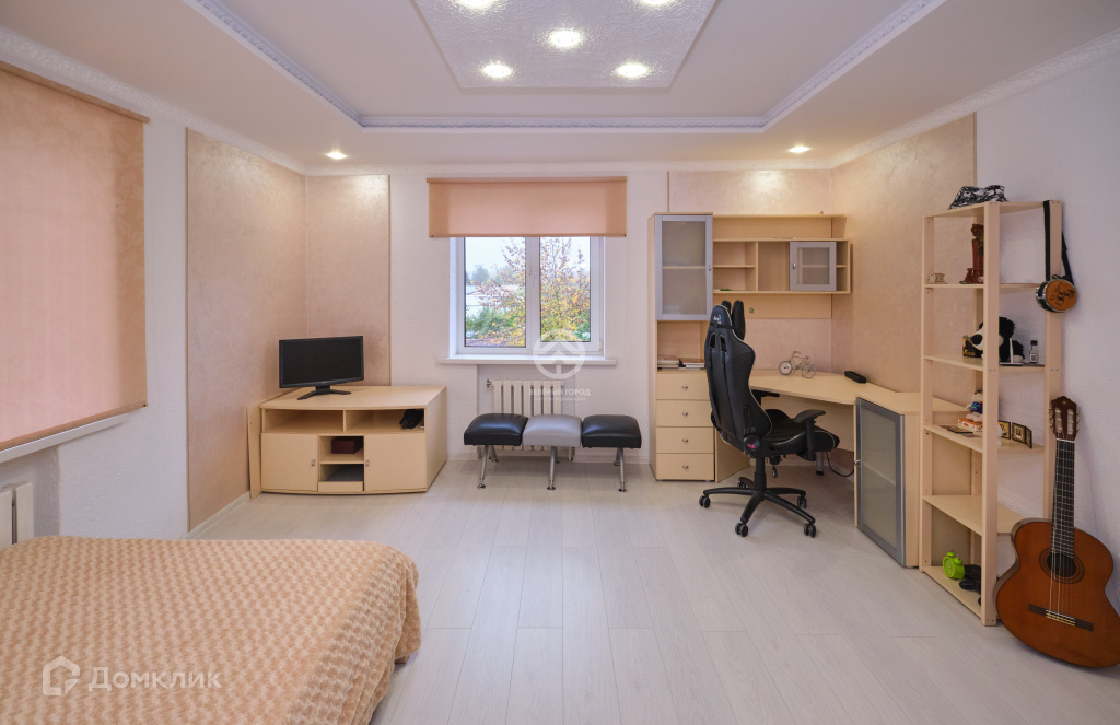 Огромный холл с теплым полом, веранда, просторная кухня, где грамотно размещены рабочая и столовая зоны, светлая и очень большая гостиная с видами на живописный парк и водоем, уютный и комфортный рабочий кабинет, санузел с ванной. Вся отделка выполнена дорогими и качественными материалами, все выдержано в спокойных пастельных тонах. Стены – обои, теплый пол – керамогранит.
