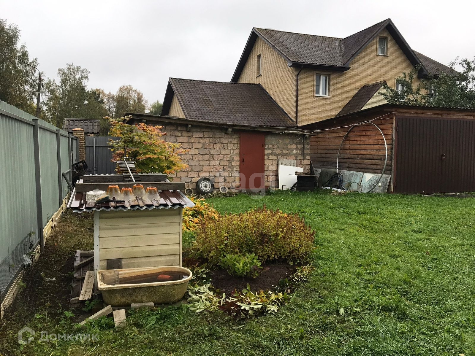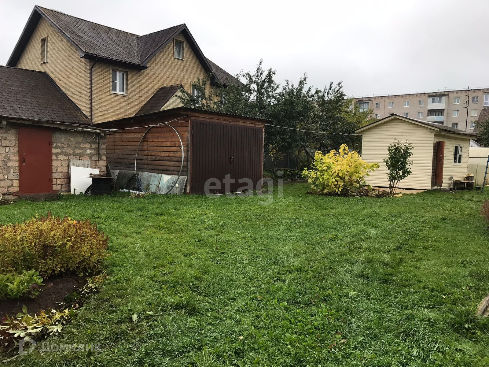 На участке имеется два гаража, хозяйственная постройка, теплица, беседка.