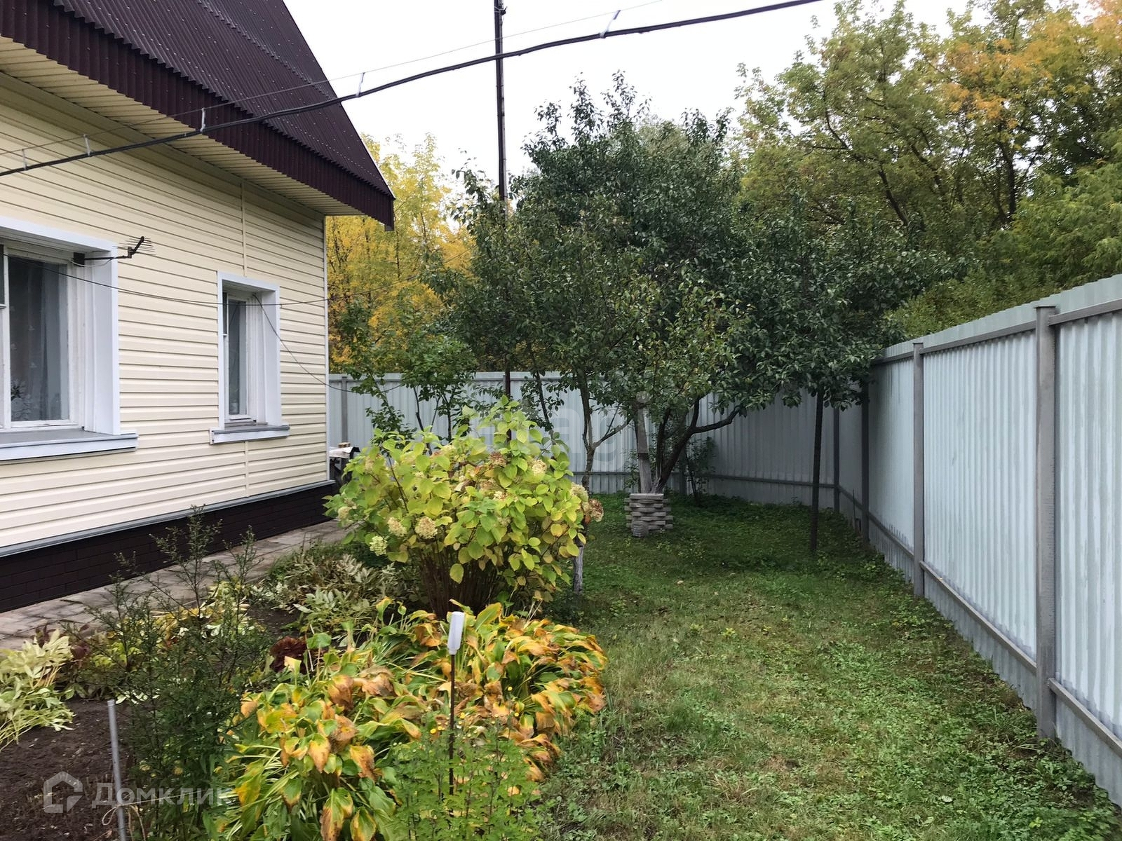 Участок очень ухоженный, ровный, правильной формы, высажены декоративные и плодово-ягодные деревья и кустарники, газон, по периметру участок огорожен забором из профлиста.