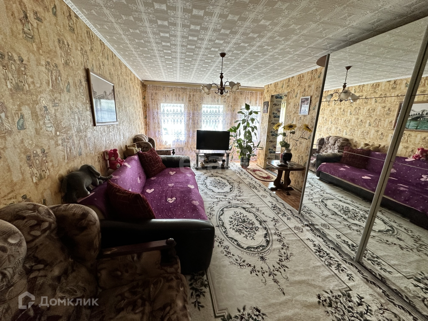 Фундамент ленточный, основная часть дома из бревна, облицовка-киприч. На окнах новые пластиковые стеклопакеты.