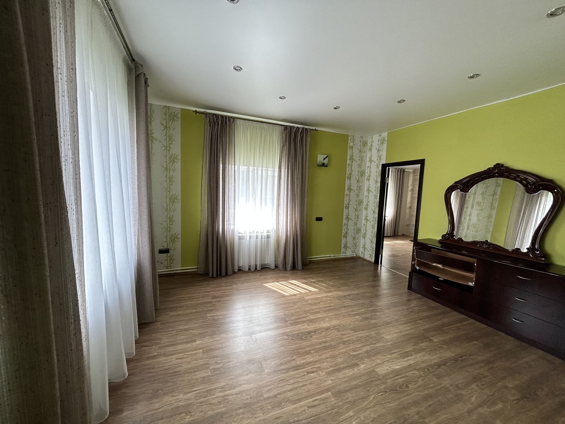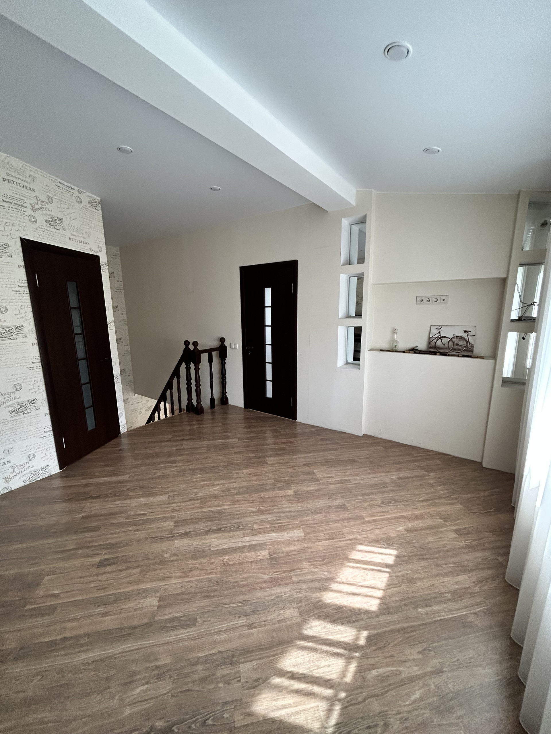 На втором этаже: две комнаты и большая гардеробная .