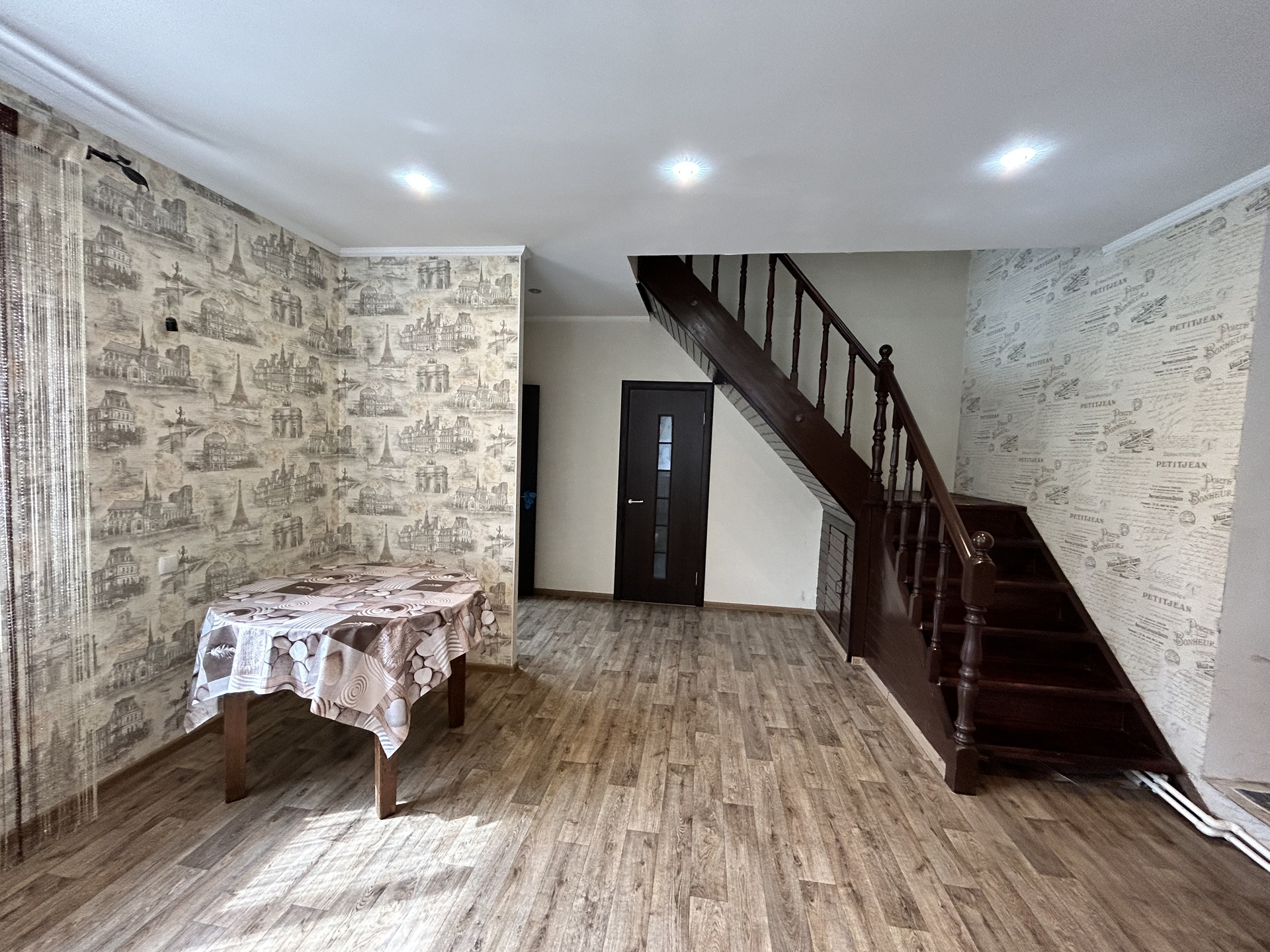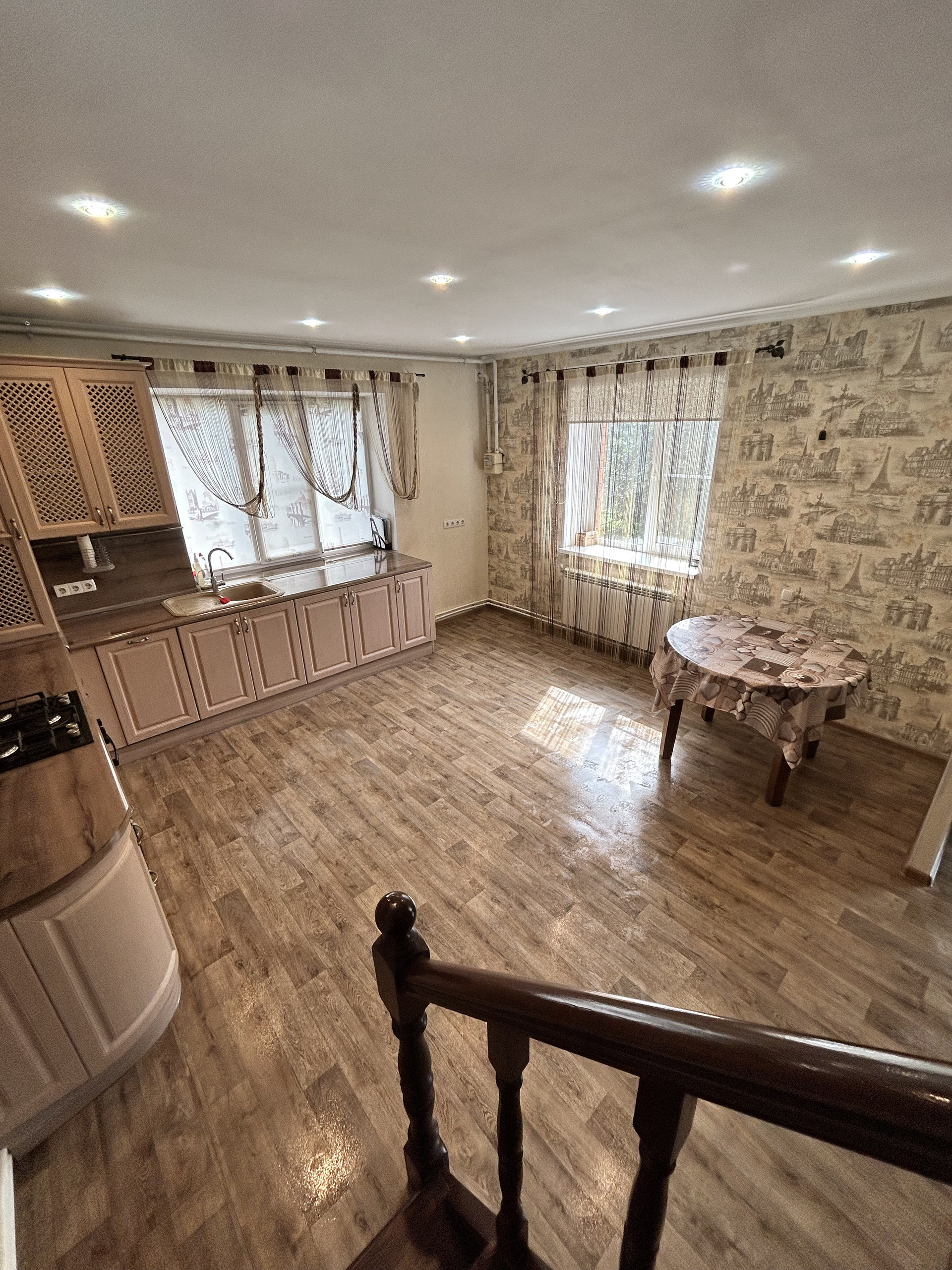 - Прихожая и с/у полы кафельная плитка. Кухня -линолеум. Второй этаж -ламинат.