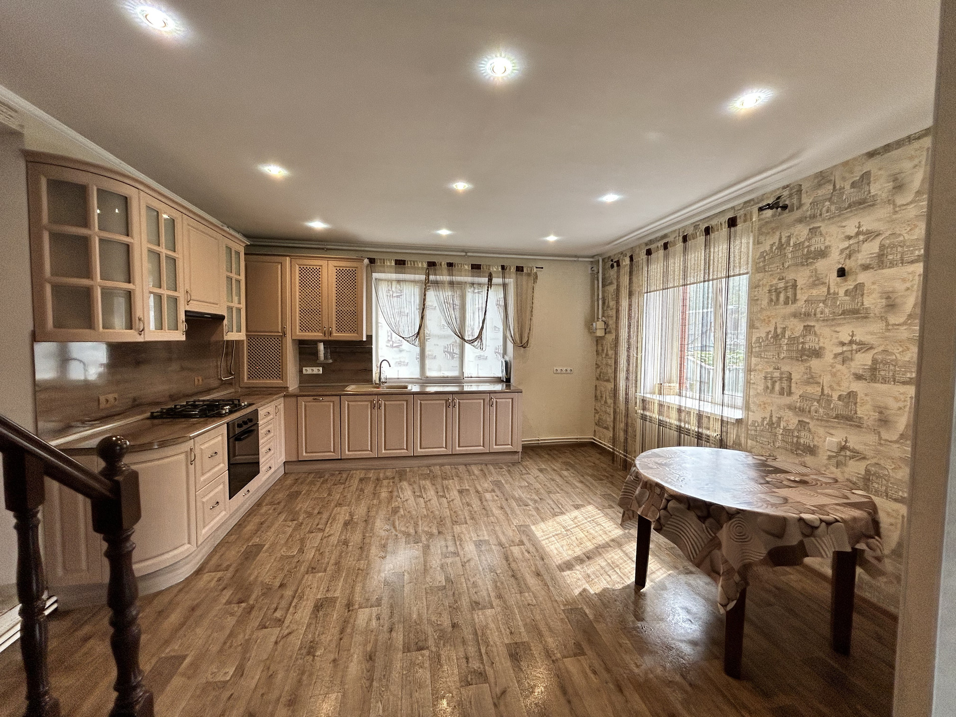 Дом в отличном состоянии. Из мебели остаётся кухонный гарнитур, стол и бытовая техника (духовой шкаф, варочная панель, посудомоечная машина , стиральная машина)