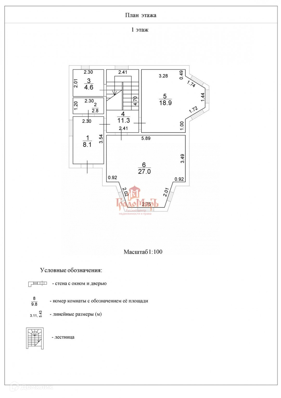 1 эт. -Кухня гостиная 27 м2.