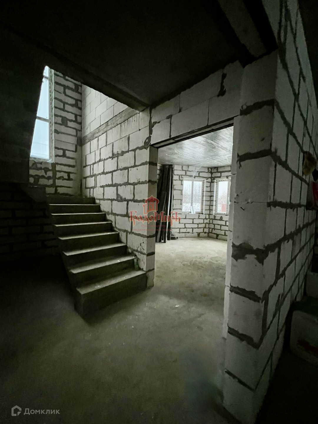 Фундамент бетонная плита, материал стен бетоноблок, перекрытия бетонные плиты. Залита бетонная межэтажная лестница. Возведены межкомнатные перегородки. Установлен качественный стеклопакет.