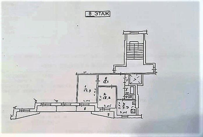 Санузел раздельный, большая застекленная лоджия с двумя входами из обеих комнат, окна во двор, просторный коридор, имеется несколько вместительных кладовок.