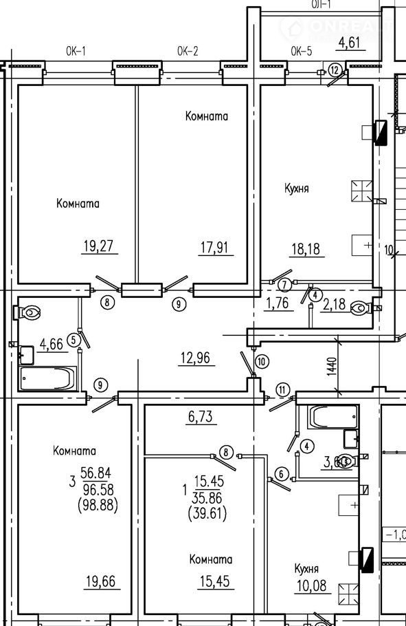 Общая площадь 98.9 м2
