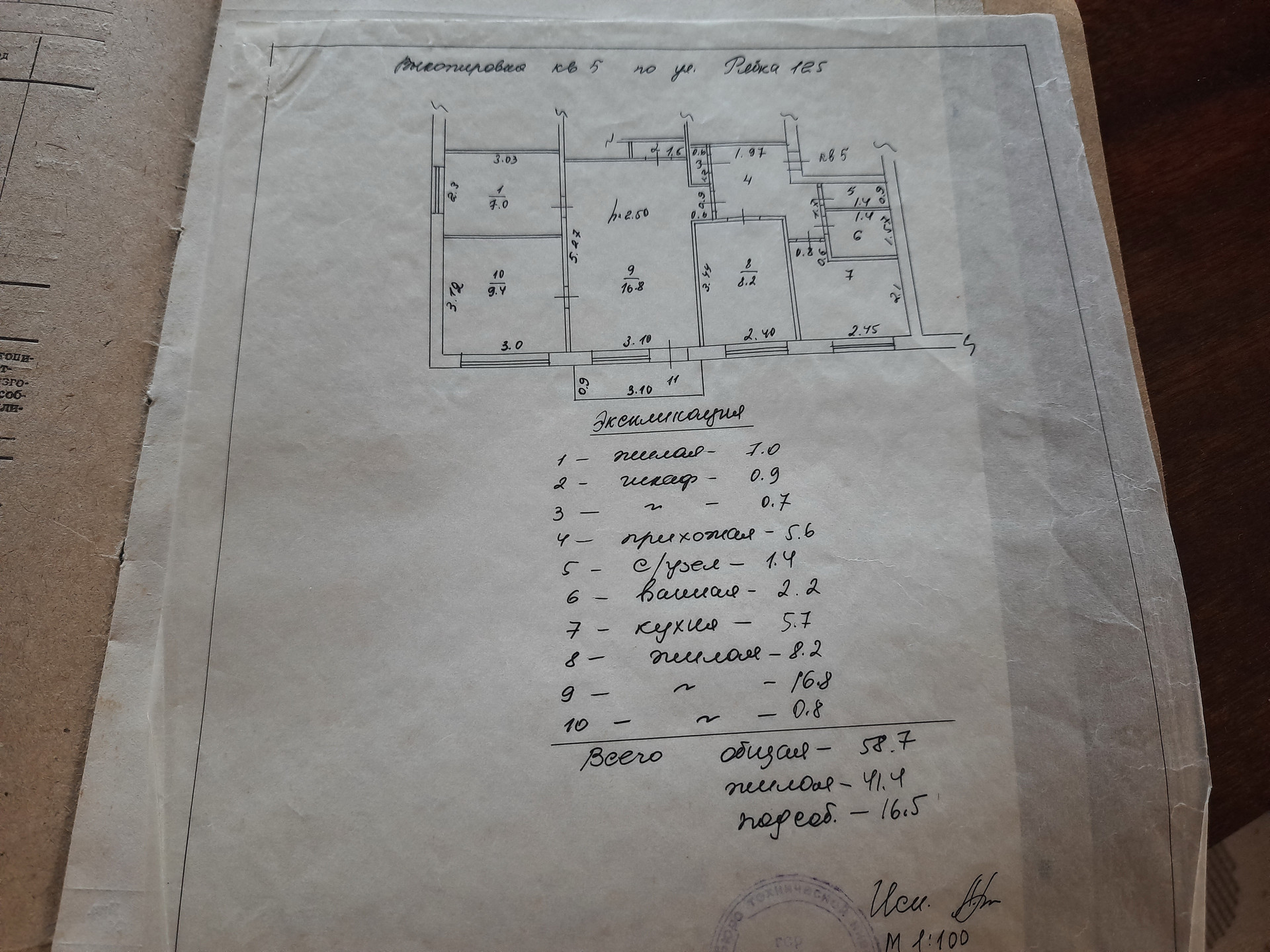 Жилая площадь 41.4 м2