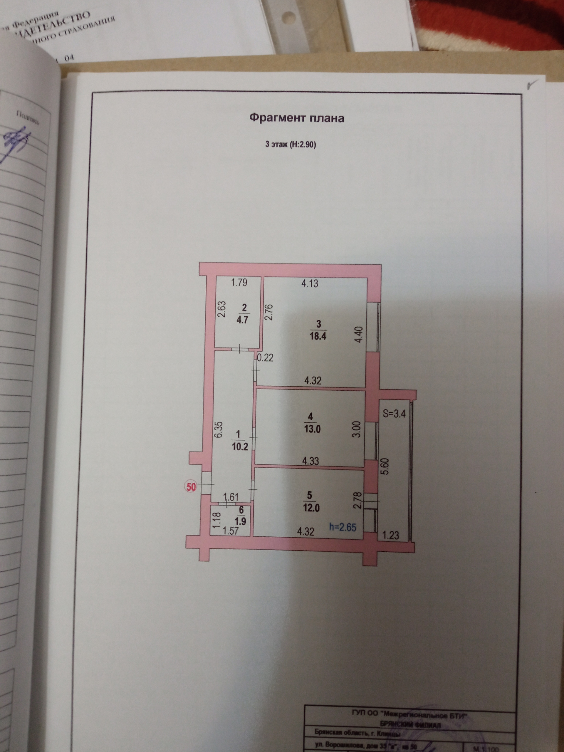 2-комнатная квартира, 60.1 м2, этаж 3 / 4, на продажу в Клинцах, улица Ворошилова, 35А