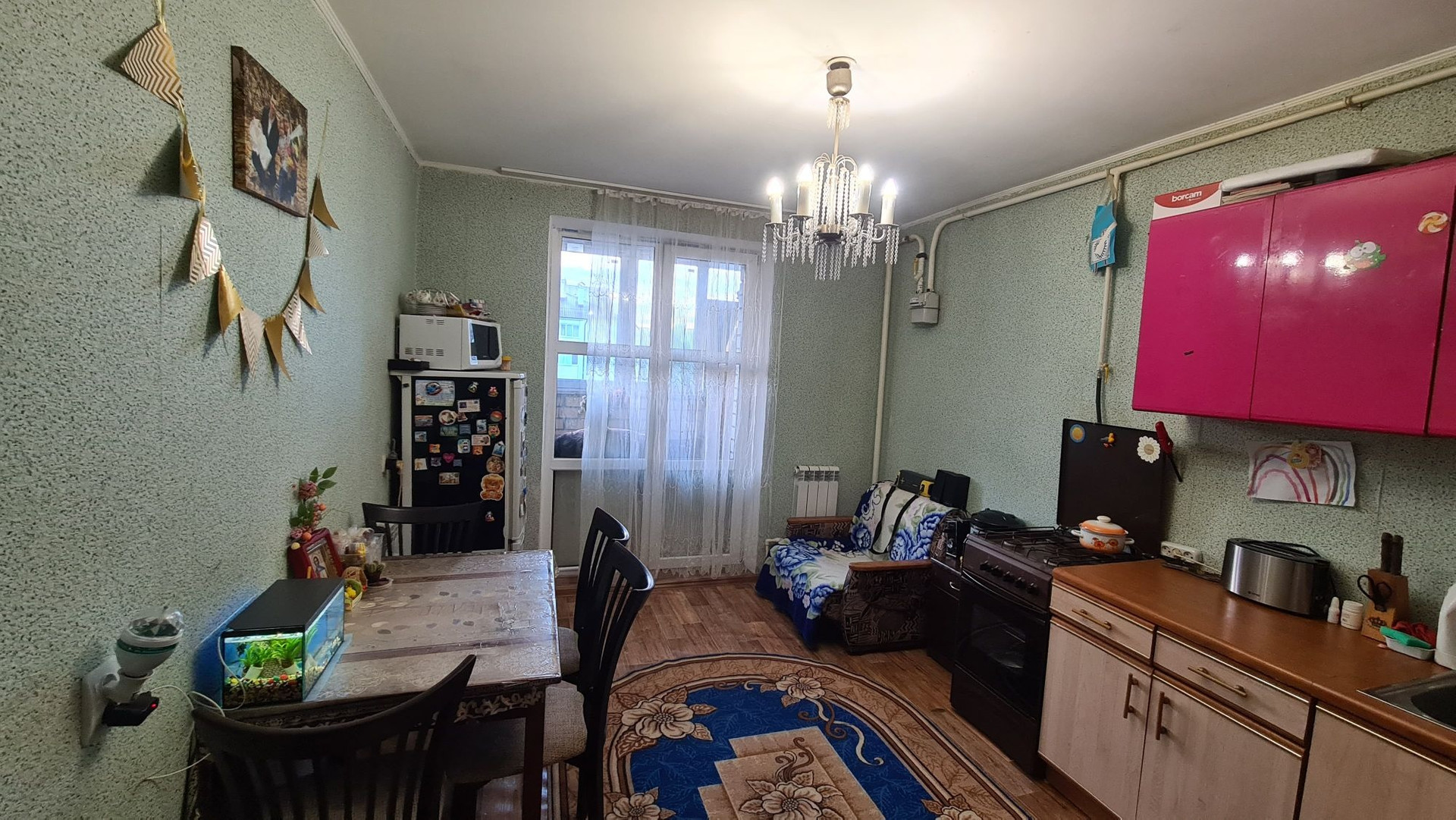 квартира с косметическим социальным ремонтом, индивидуальное отопление. расположена в тихом районе.  Рядом школа, детский сад,  магазины,  озеро.