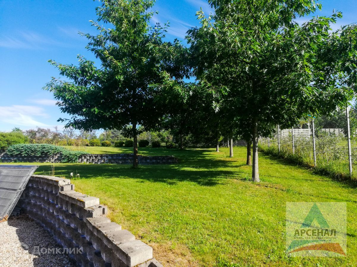 Участке - 22 сотки, полностью засеян газоном с габионновыми дизайнерскими вставками, по периметру посажено множество деревьев и кустарных насаждений, а также огорожено забором из оцинкованных панелей "Лепсе".