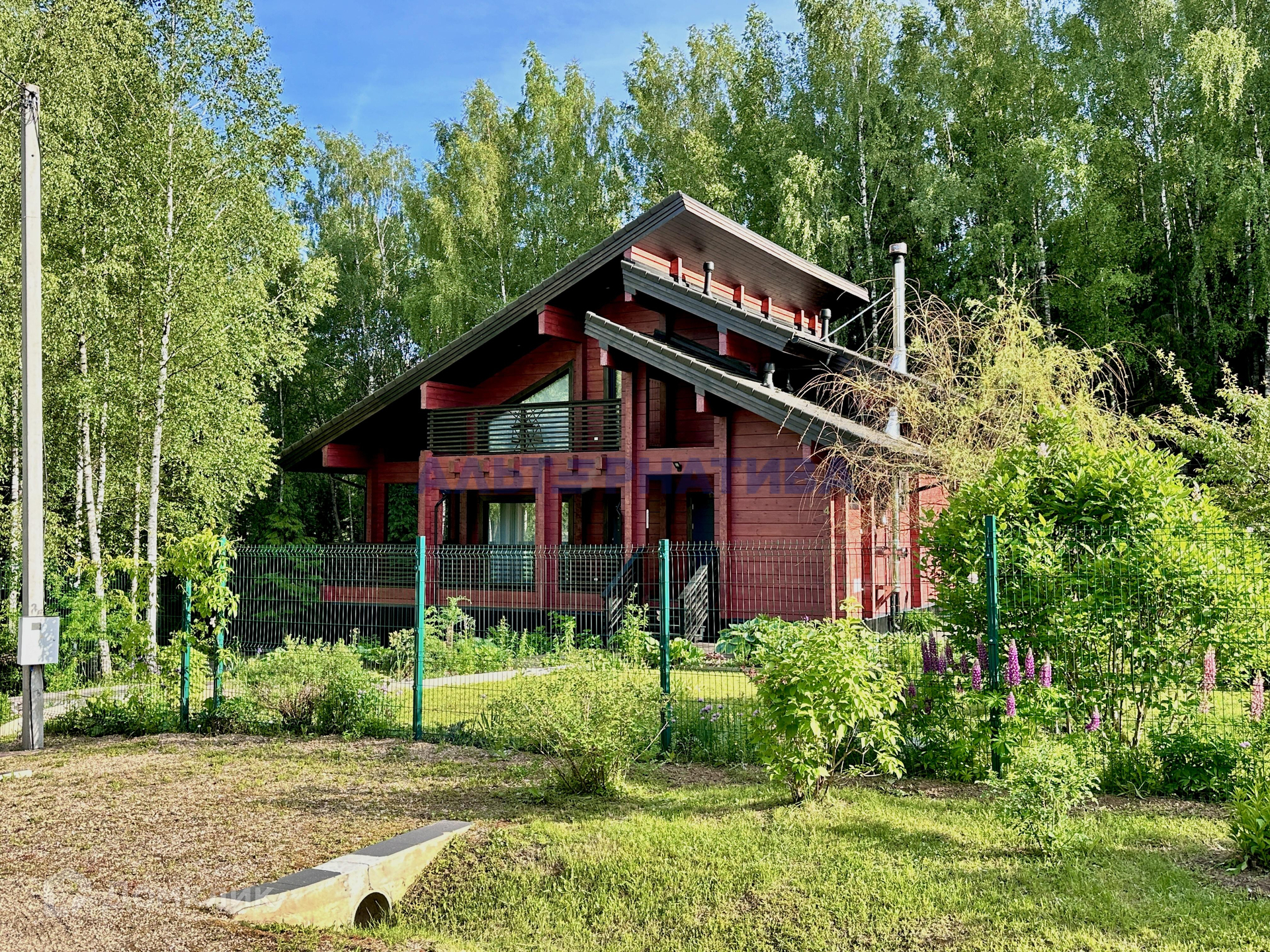 Участок 26 соток, разноуровневый, со всех сторон огорожен забором и имеет собственные выходы в лес с двух сторон, также есть ворота и калитка. По участку проведены ландшафтные работы, засеян газон, установлена система полива, дренаж, высажено множество плодово-ягодных деревьев и кустарников, а также другие декоративные растения. Организовано парковочное место. На участке есть хозблок для хранения дачного инвентаря, теплица, дровник. Хороший круглогодичный подъезд.
