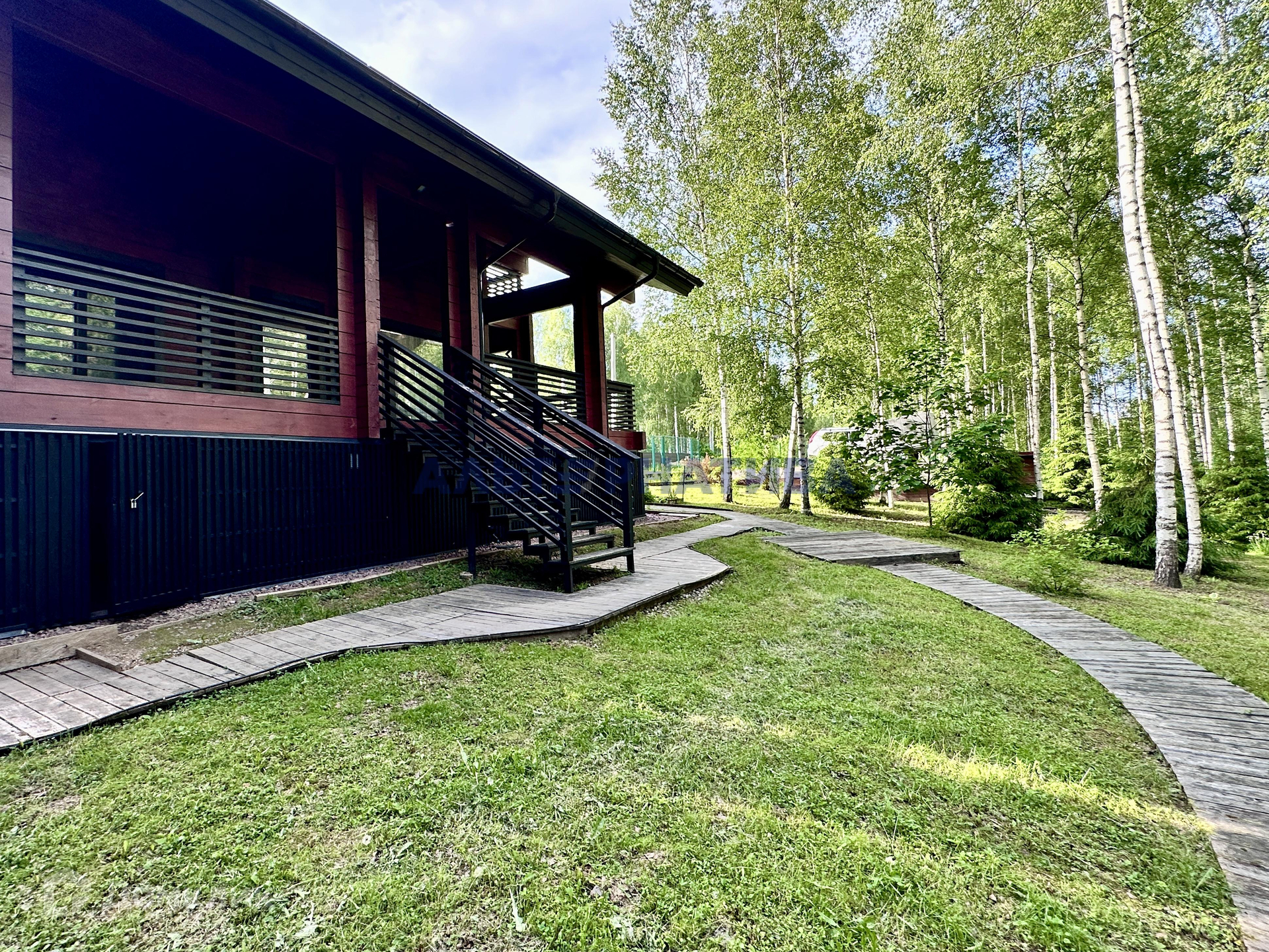 Дом расположен на участке 26 соток в окружении березовой рощи. Дом двухэтажный, 2018 года постройки, площадью 182 кв.м., не считая веранд и балконов. Очень теплый, предназначен для постоянного проживания. В доме практичная и удобная планировка: на первом этаже расположена просторная кухня-гостиная с выходом на веранду, гостевая комната, санузел, котельная. На втором этаже – просторный холл, две спальни, кабинет с выходом на балкон и санузел.