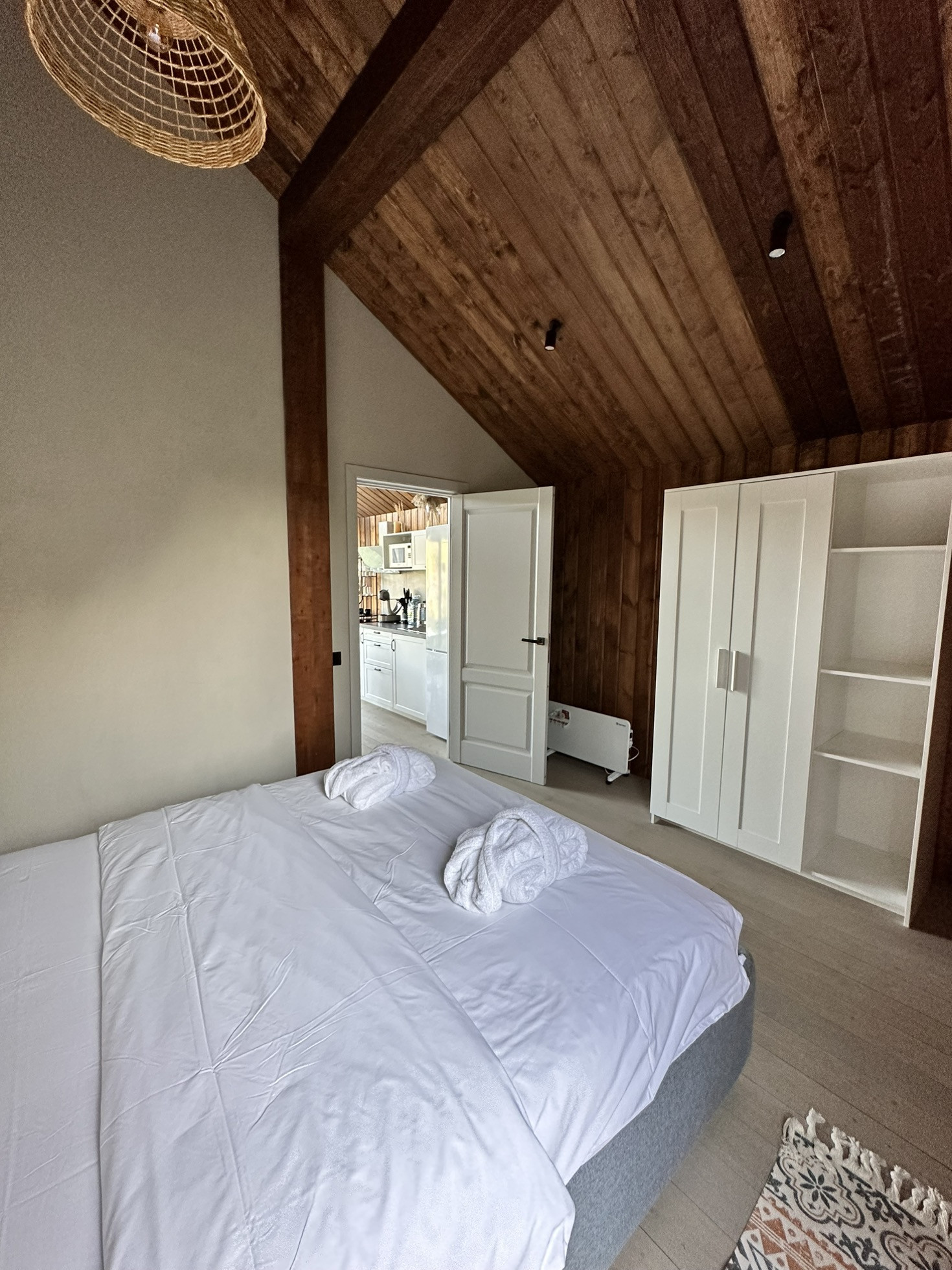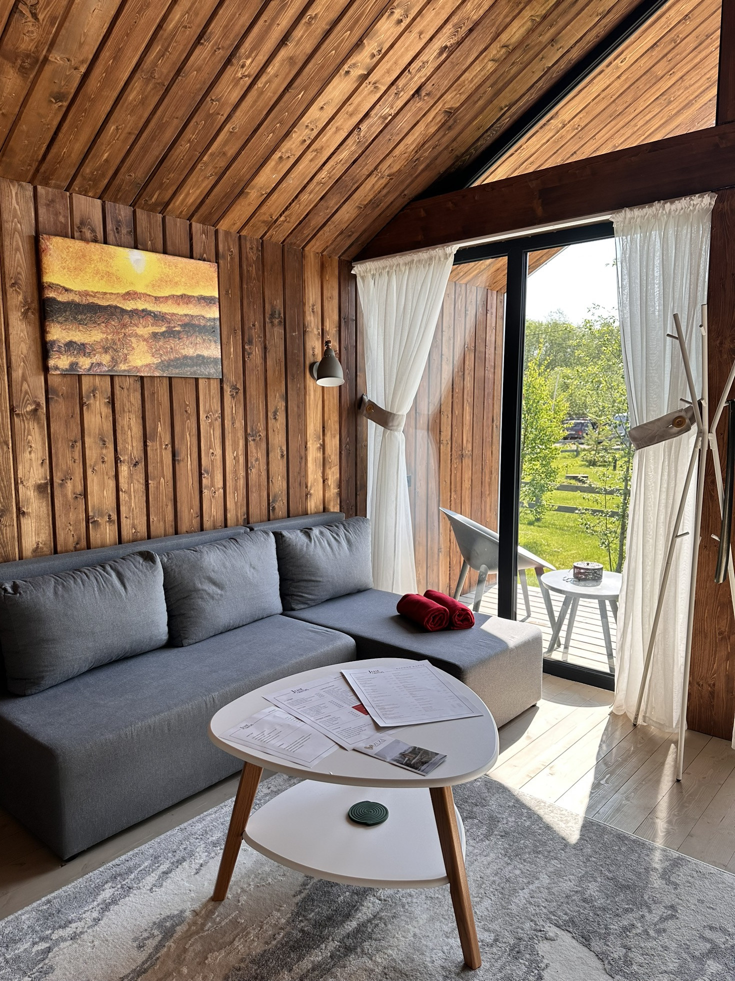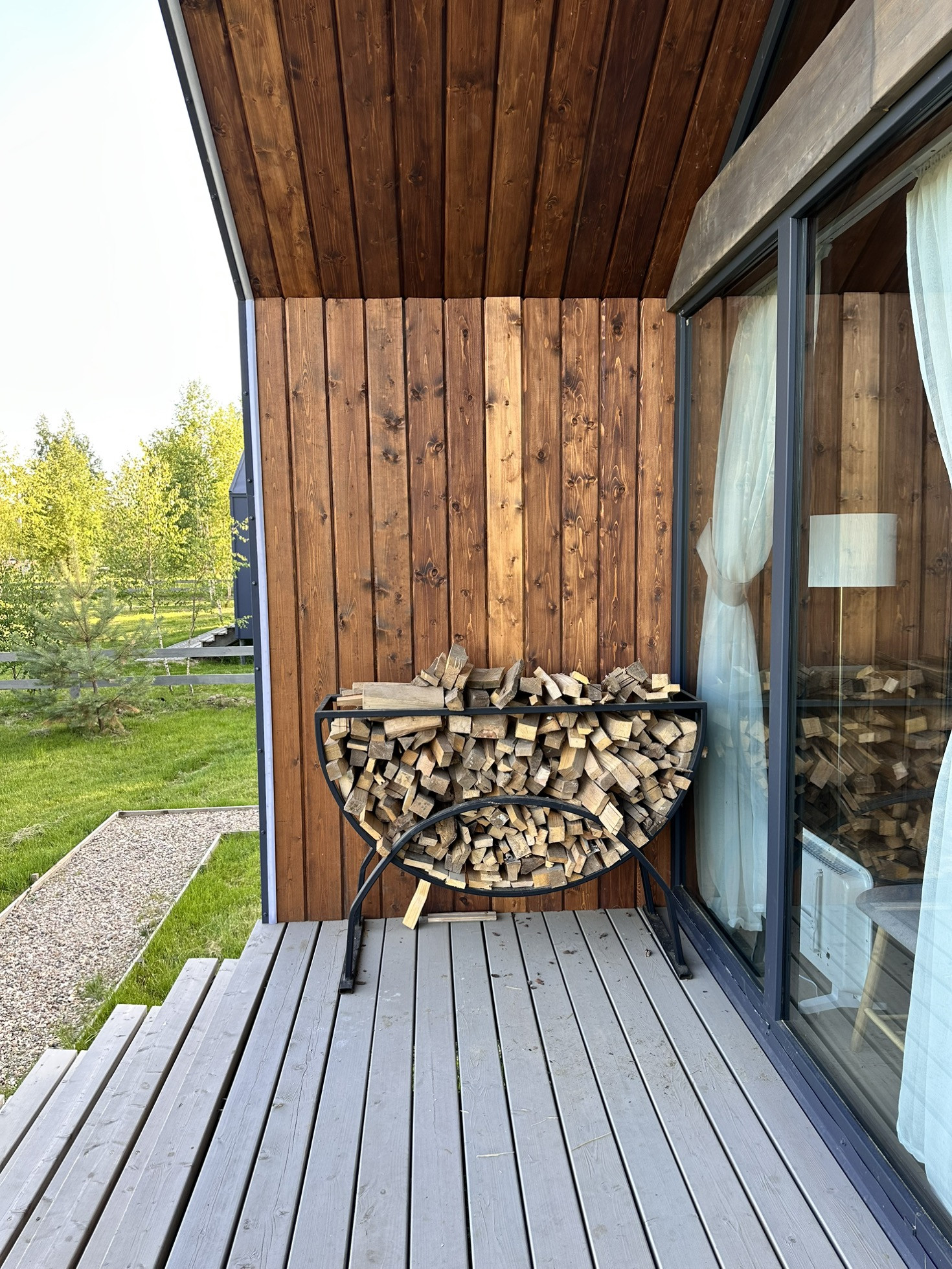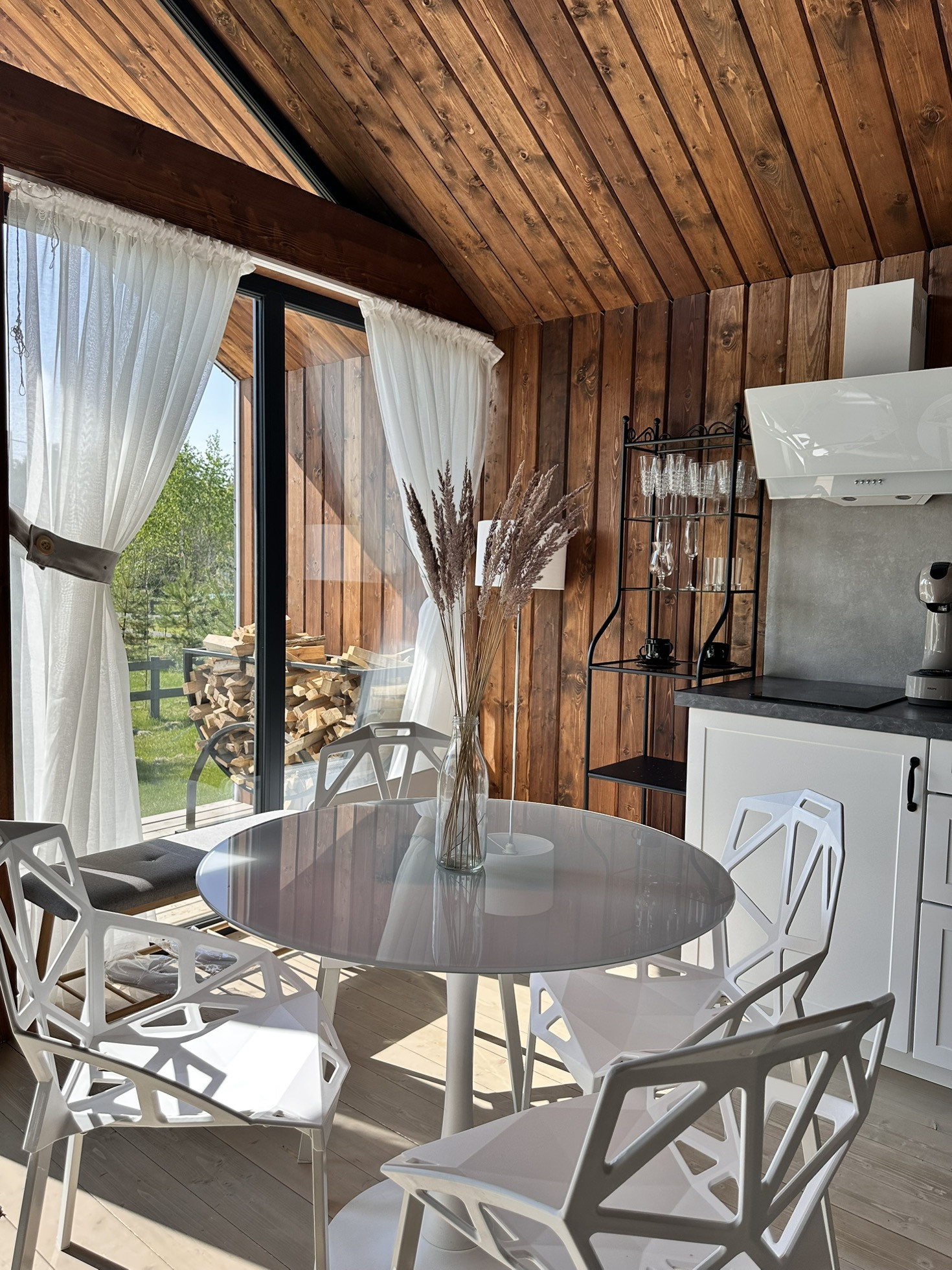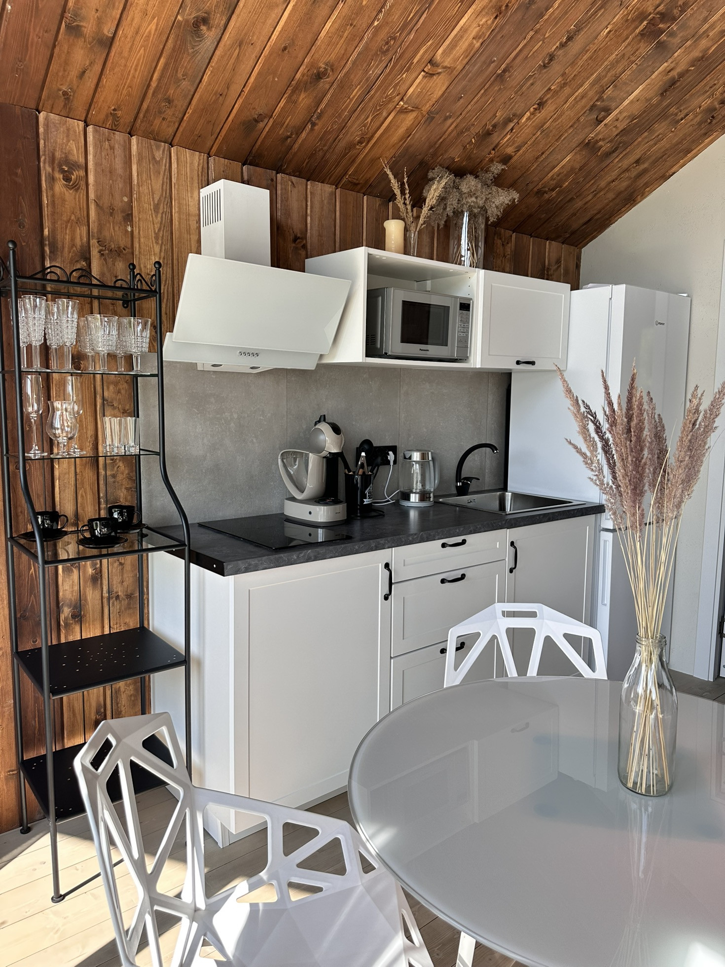 Дом Barn построен на участке 6,2 соток. Площадь застройки 55 кв.м. Дом 43 кв.м. + 12 кв.м. терраса. Одна изолированная спальня, кухня-гостиная, санузел, терраса, своя парковка. Участок засажен соснами.