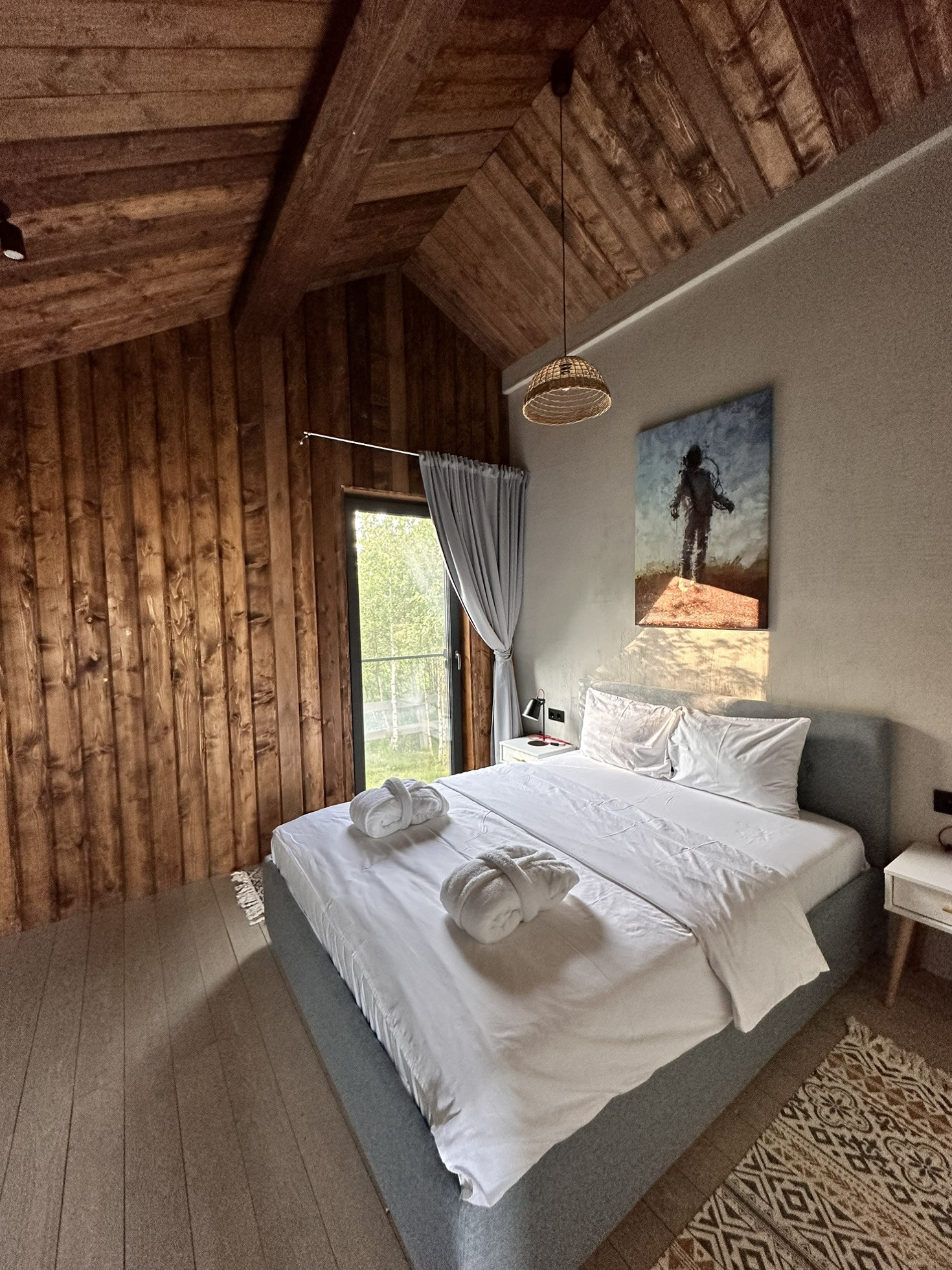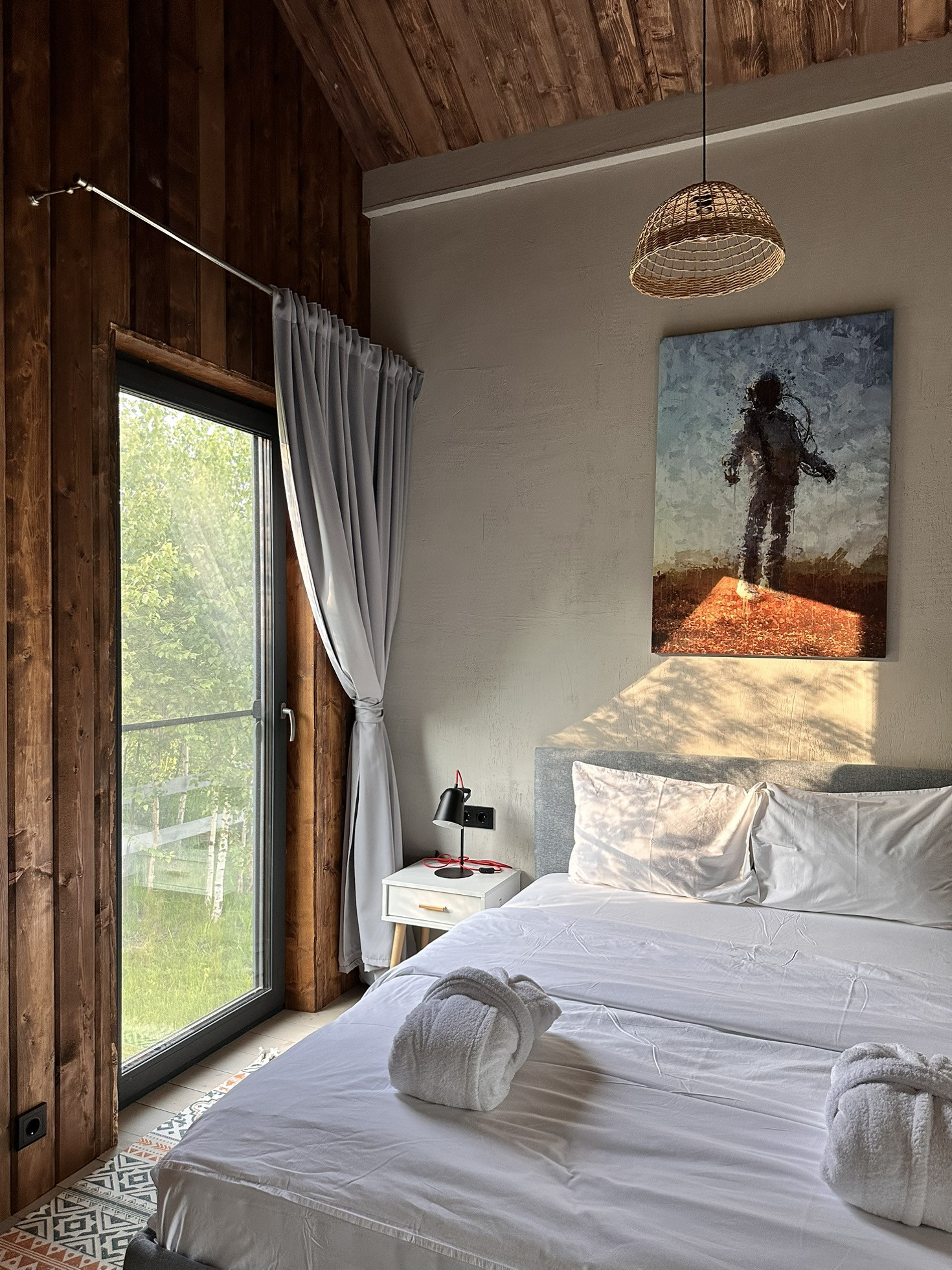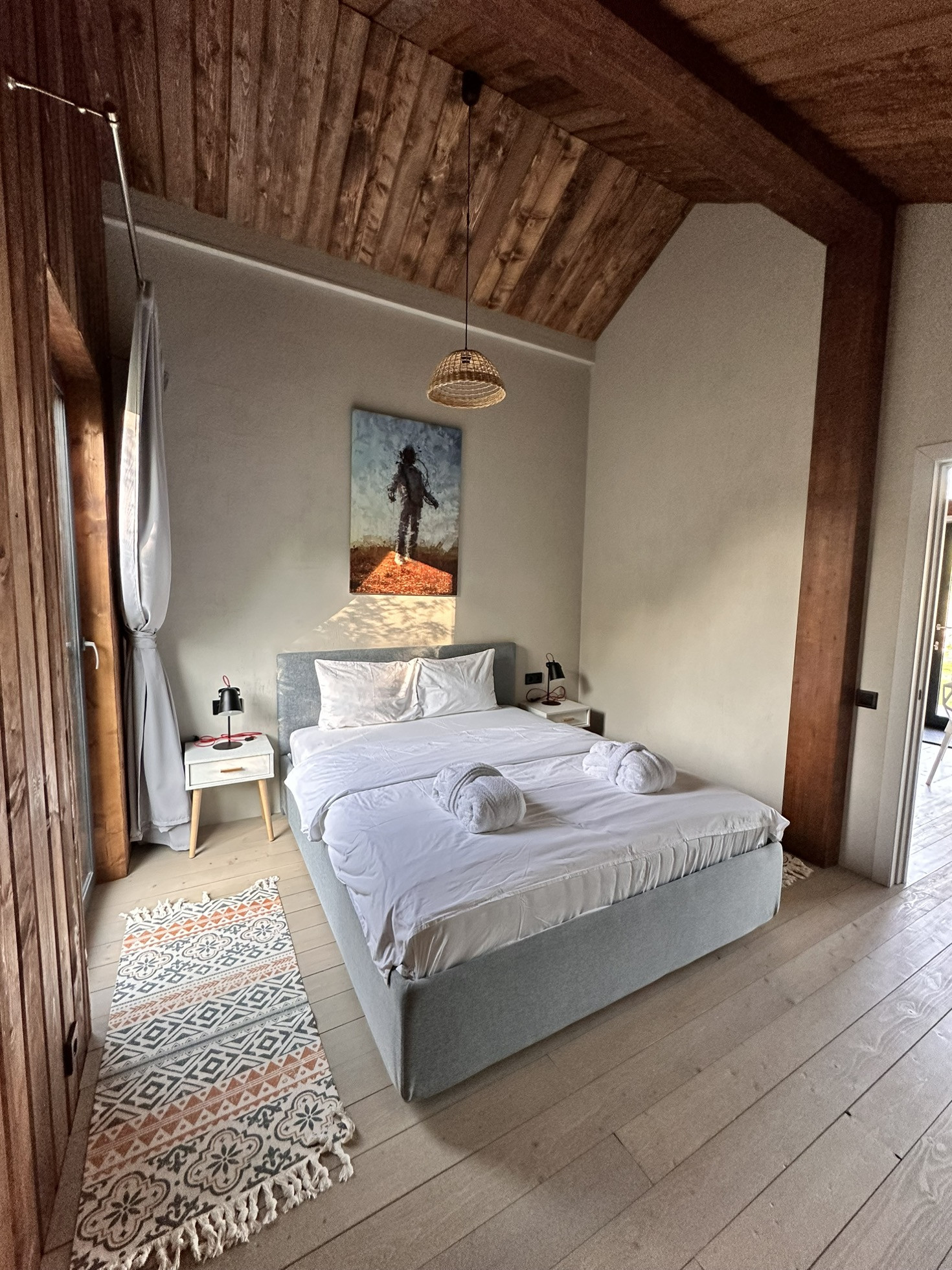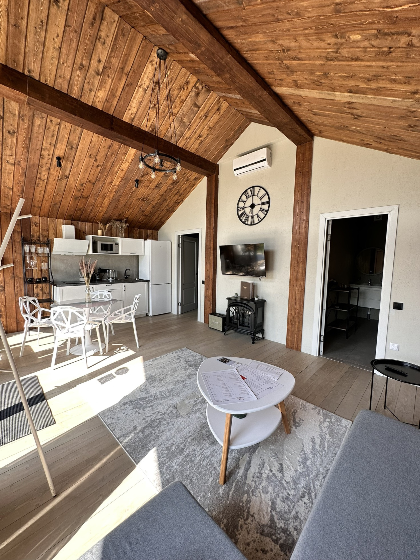 Дом Barn построен на участке 6,2 соток. Площадь застройки 55 кв.м. Дом 43 кв.м. + 12 кв.м. терраса. Одна изолированная спальня, кухня-гостиная, санузел, терраса, своя парковка. Участок засажен соснами.