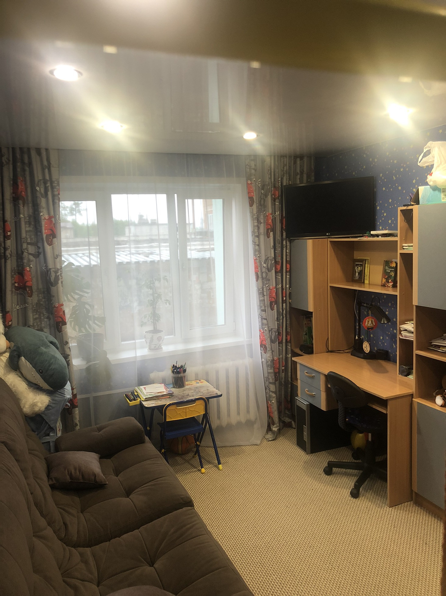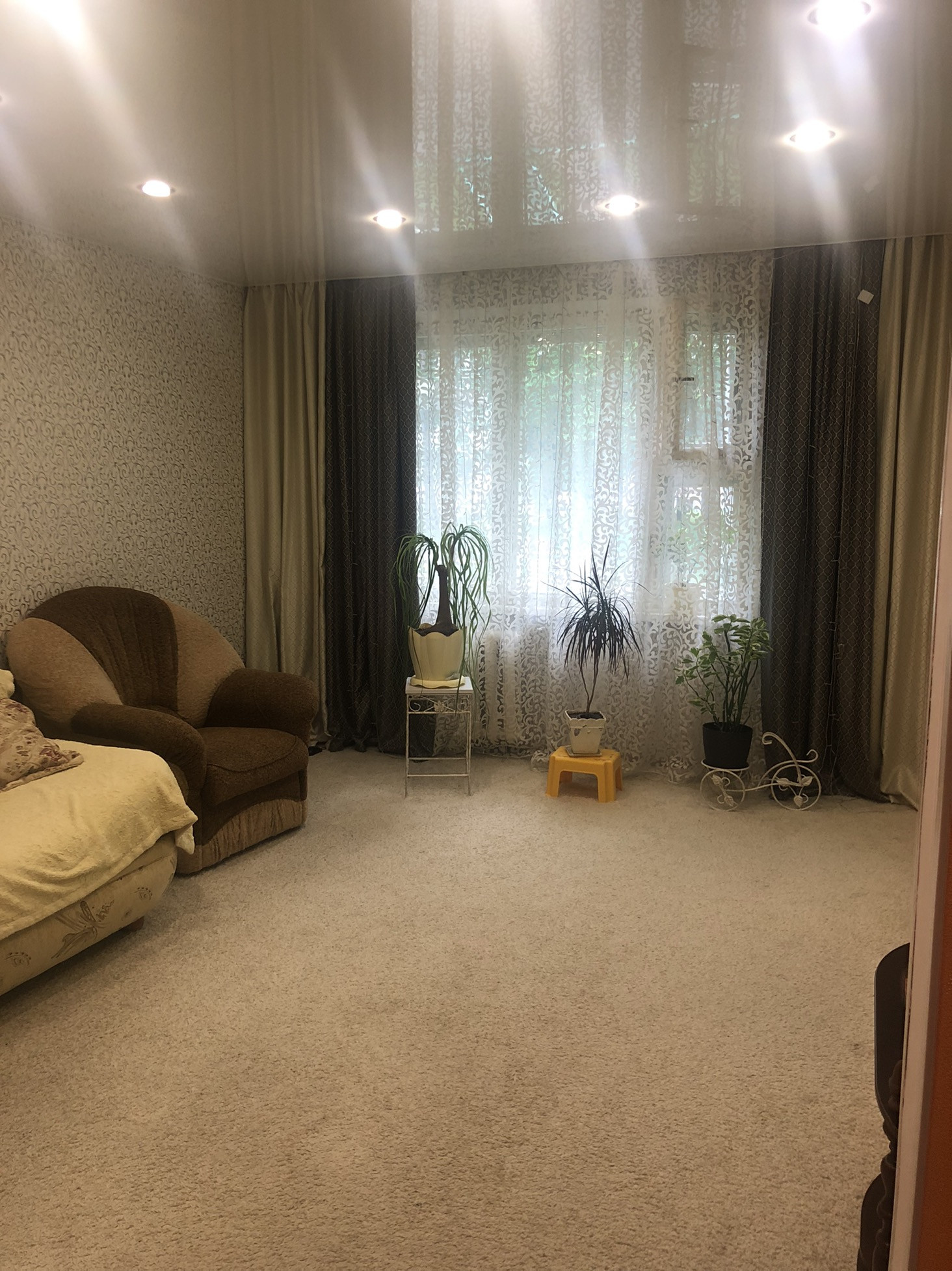 Хороший ремонт,натяжные потолки, ламинат, туалет ванна в кафеле, бойлер, кондиционер, видеонаблюдение, лоджия застеклена, обшита вагонкой, тамбур сделан ремонт, окна частично ПВХ, рядом детский сад, школа. Частично мебелированная. Без долгов и обременений.