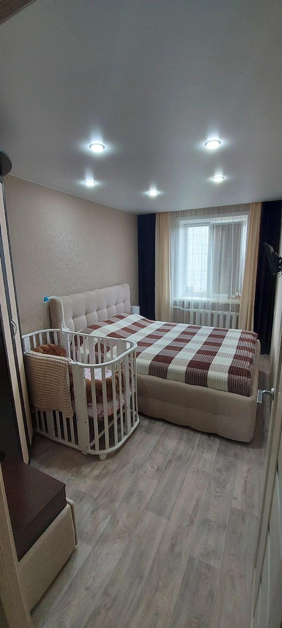 Дом очень тёплый, окна евро, ремонт свежий, стены выровнены, потолок натяжной, сделана стяжка пола. Балкон большой тоже с новым стеклопакетом. В квартире остаётся: