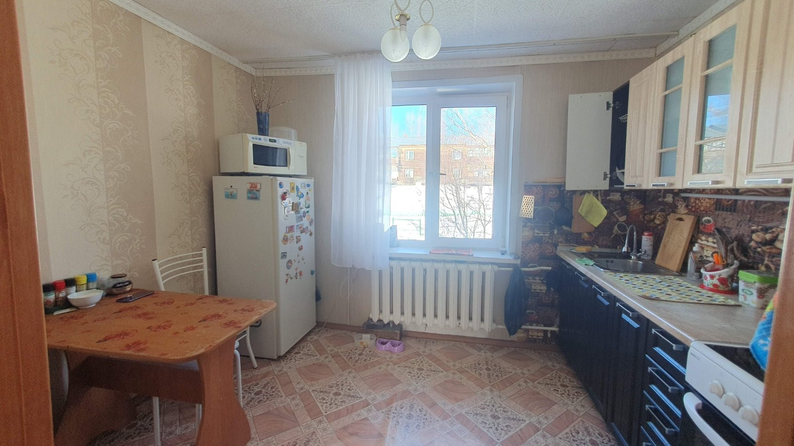 теплая квартира,Сделан ремонт.Заменена э/проводка,окна, частично радиаторы отопления.под домом имеется теплый гараж с водоснабжением и отоплением.Большая кладовка.оставляю все.встроенный кух. гарнитур.