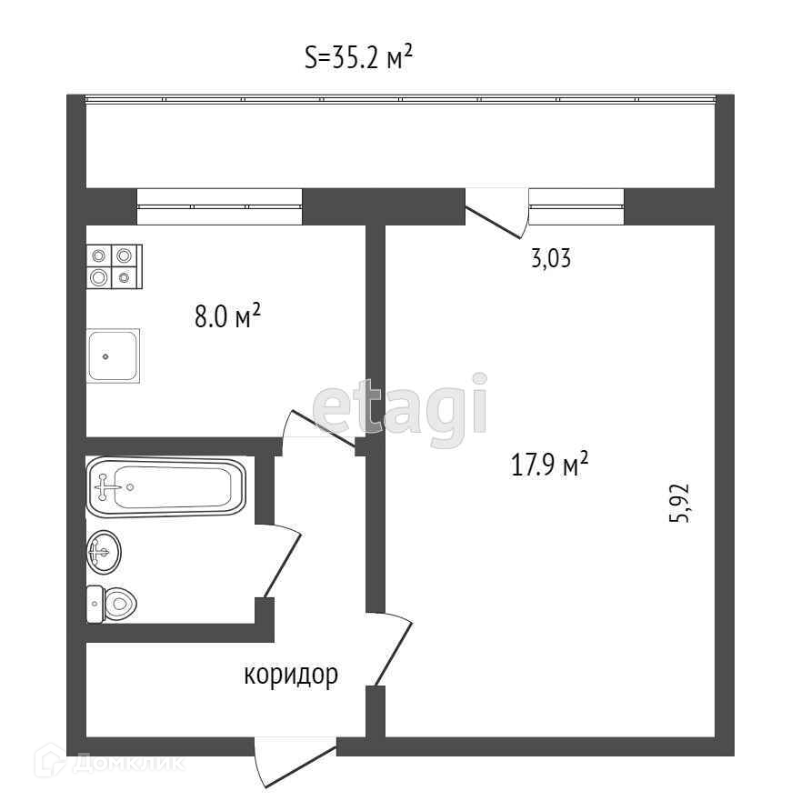 Общая площадь 35.2 м2