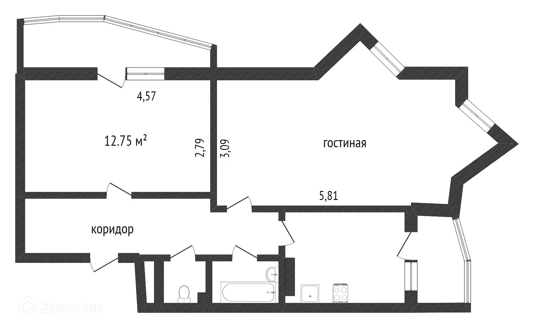 Балкон, лоджия 1 балкон