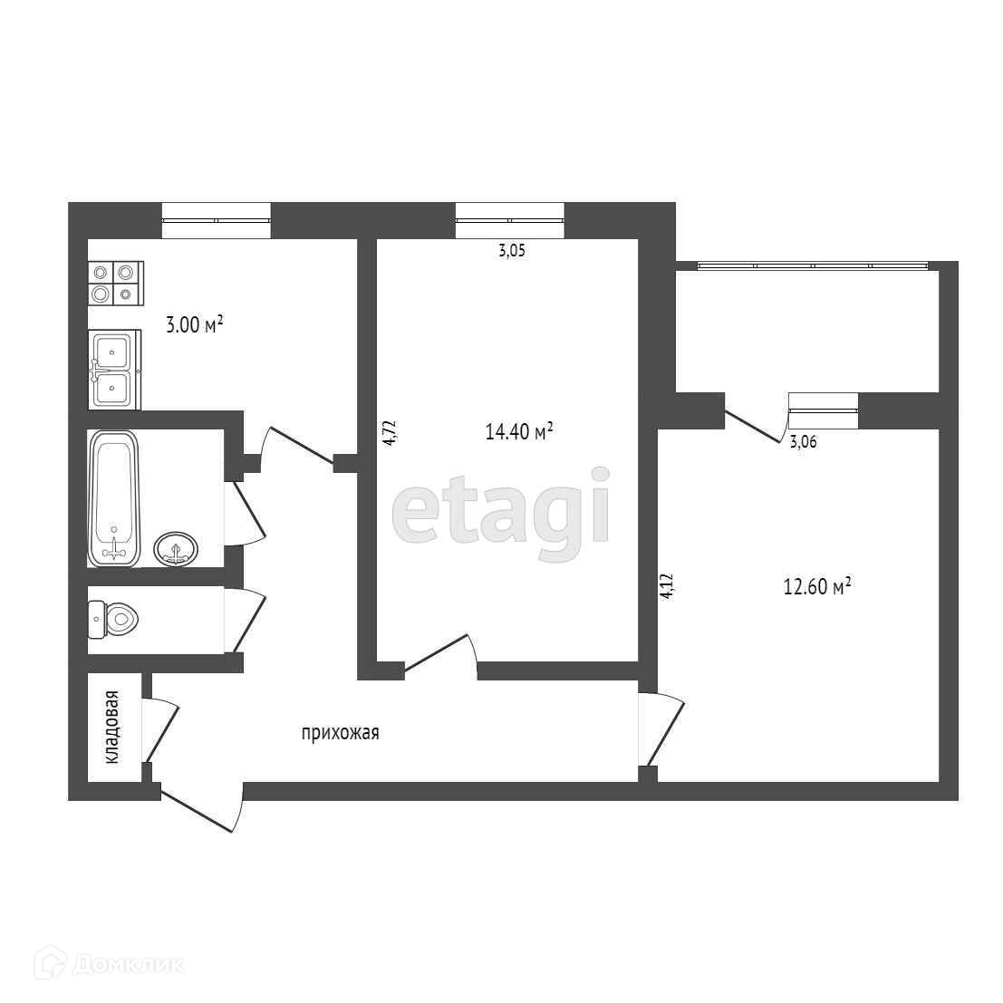 Общая площадь 48.7 м2