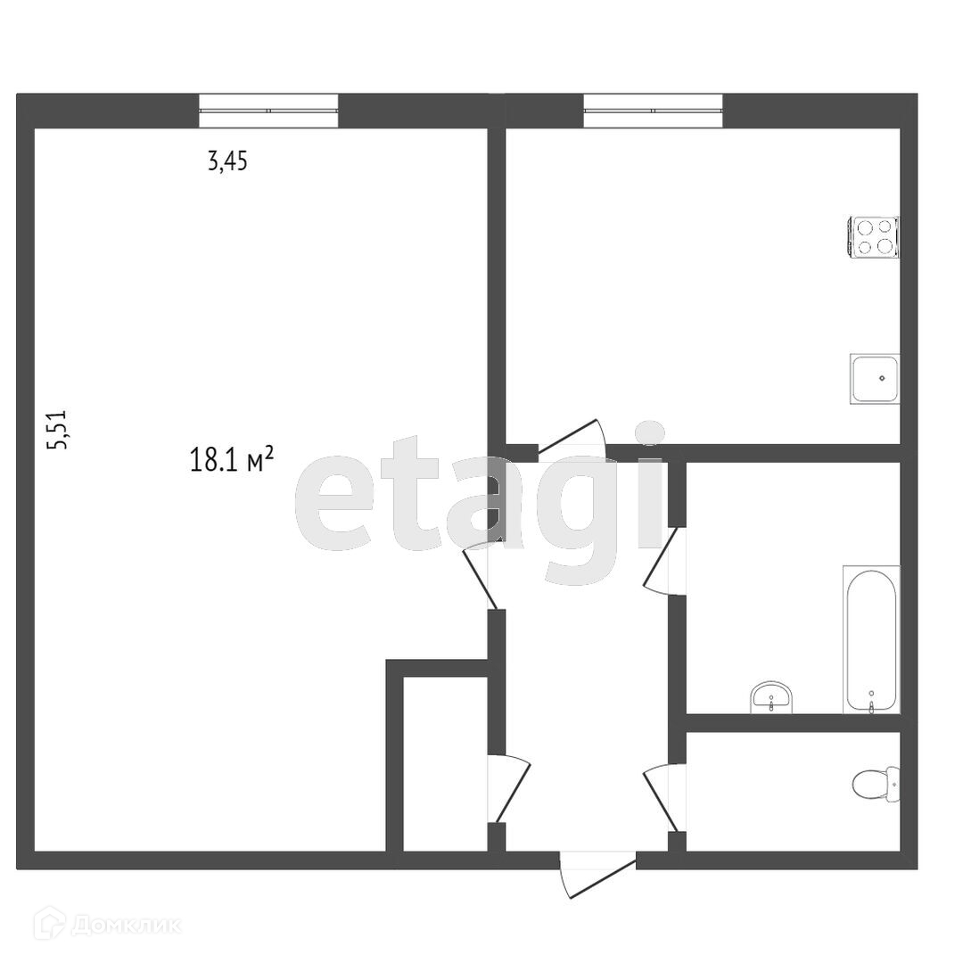 Общая площадь 33.4 м2