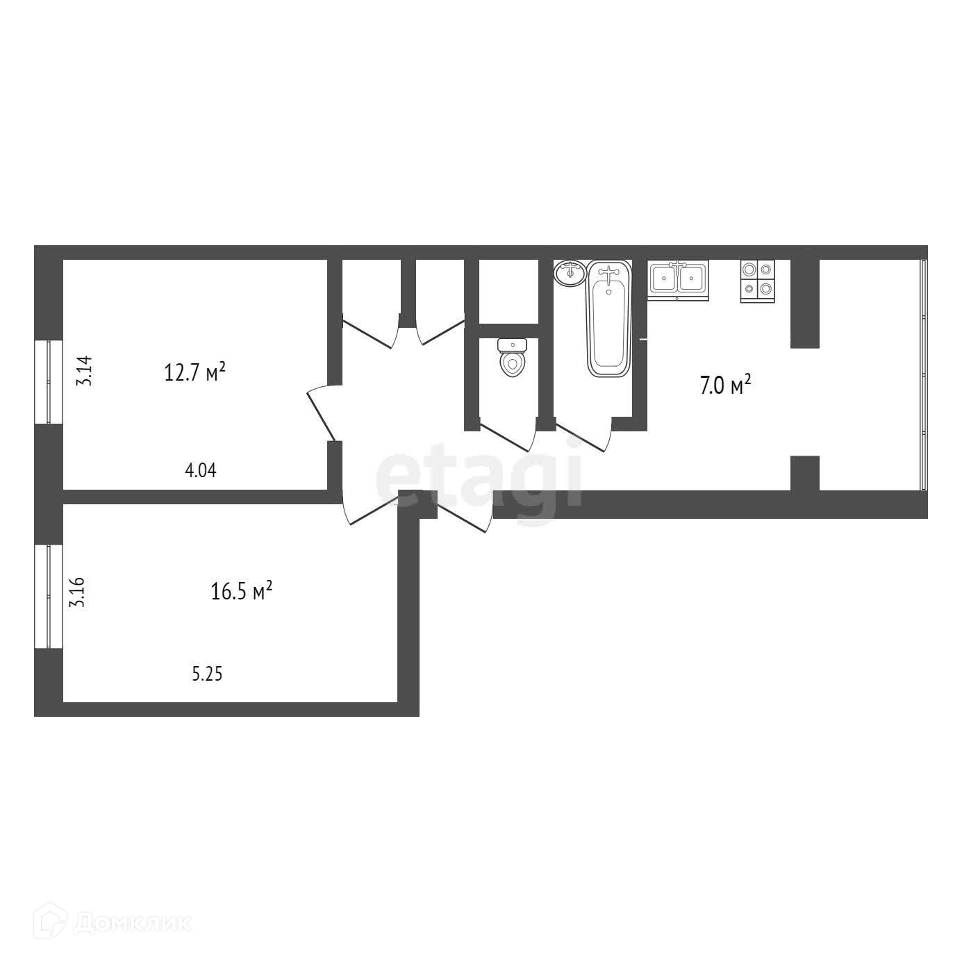 Общая площадь 50.8 м2