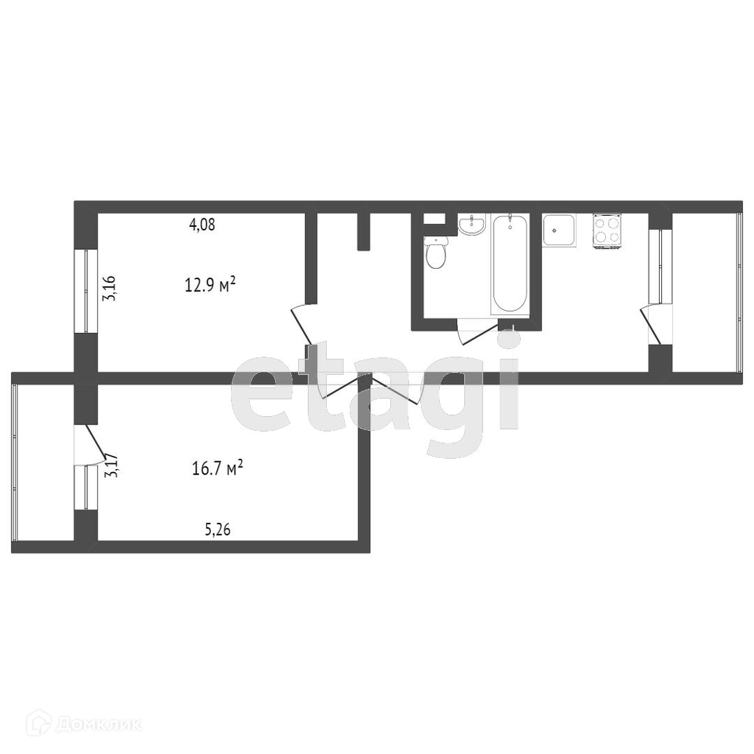 Общая площадь 51.6 м2