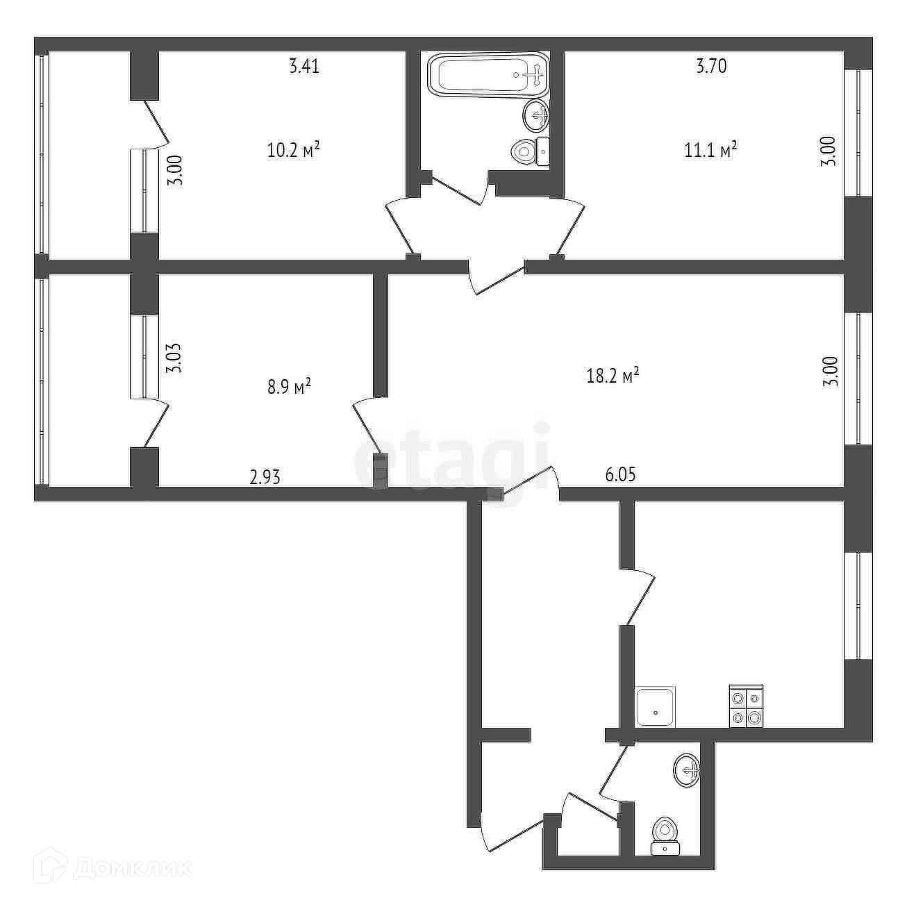 Общая площадь 74.5 м2