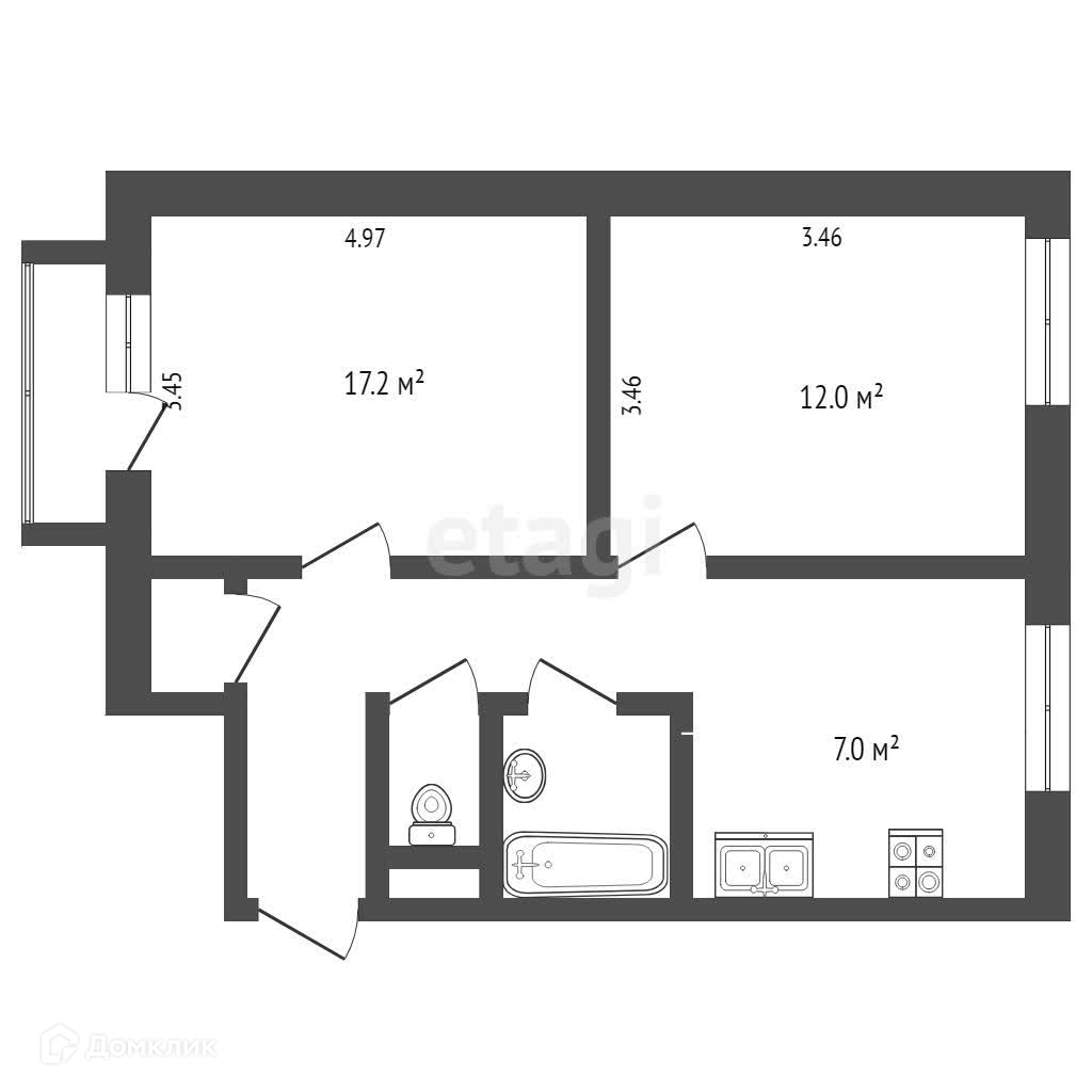 Общая площадь 50.6 м2