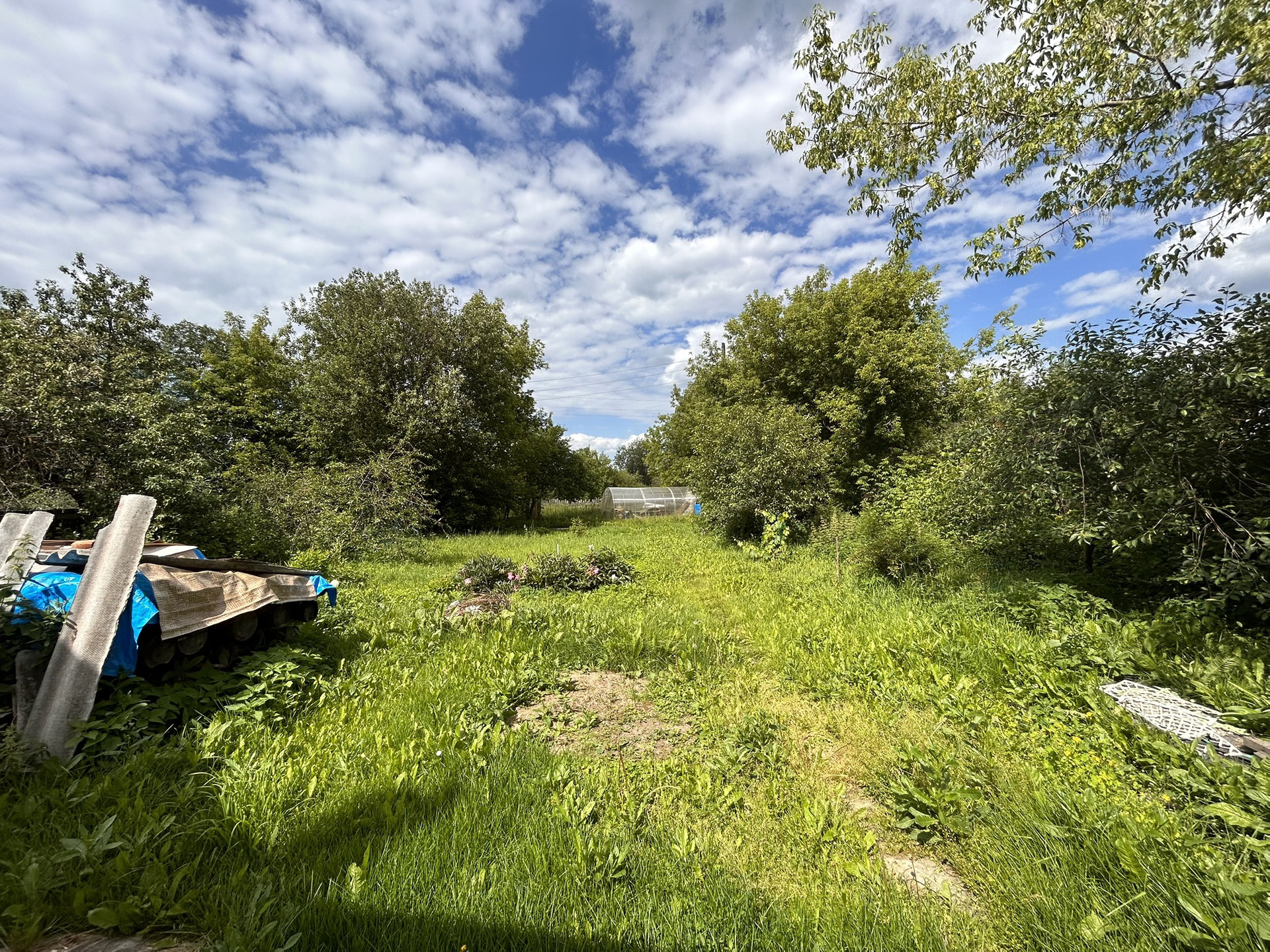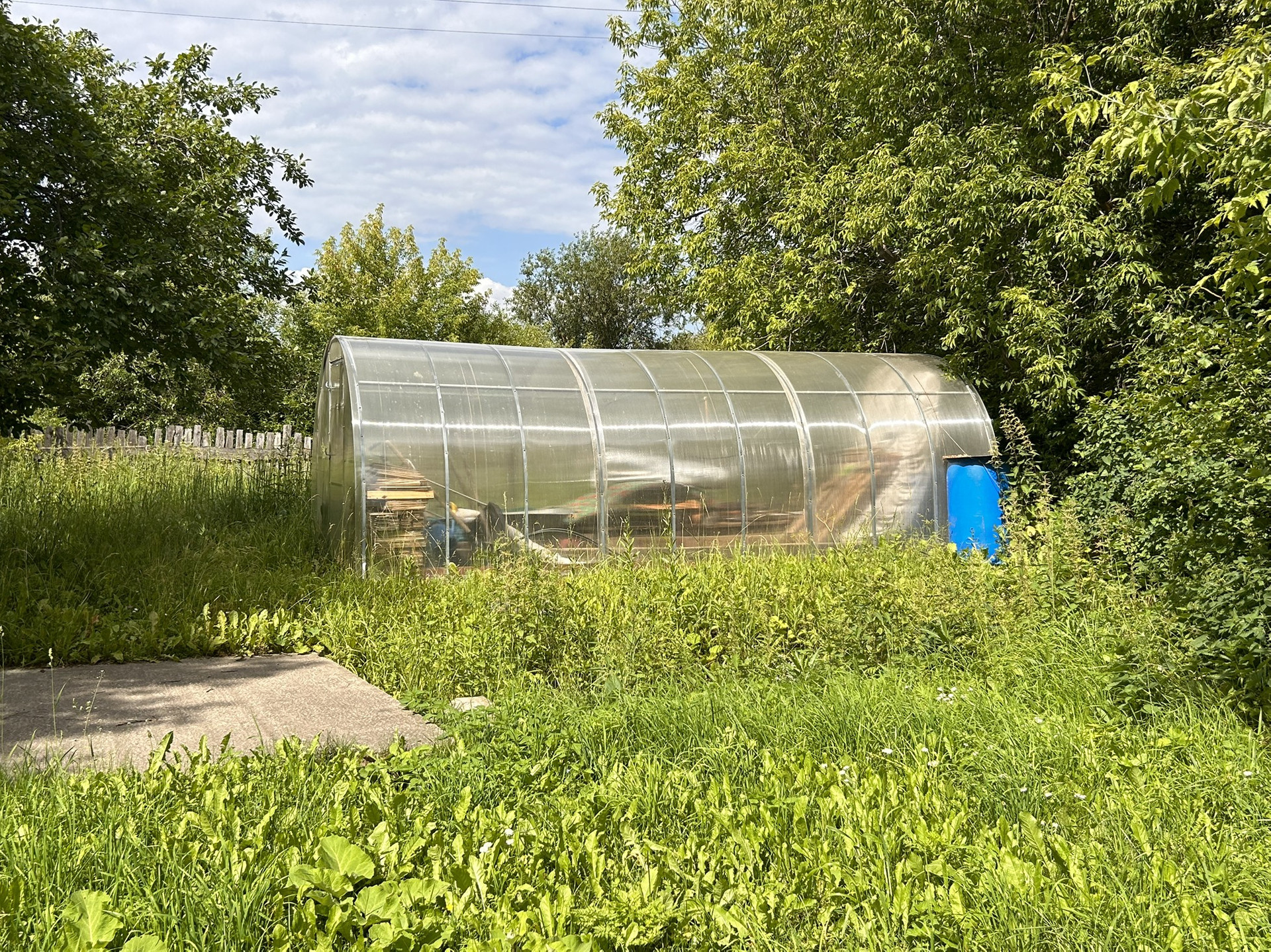 На участке расположена большая теплица 6 метров, а так же имеется гараж.