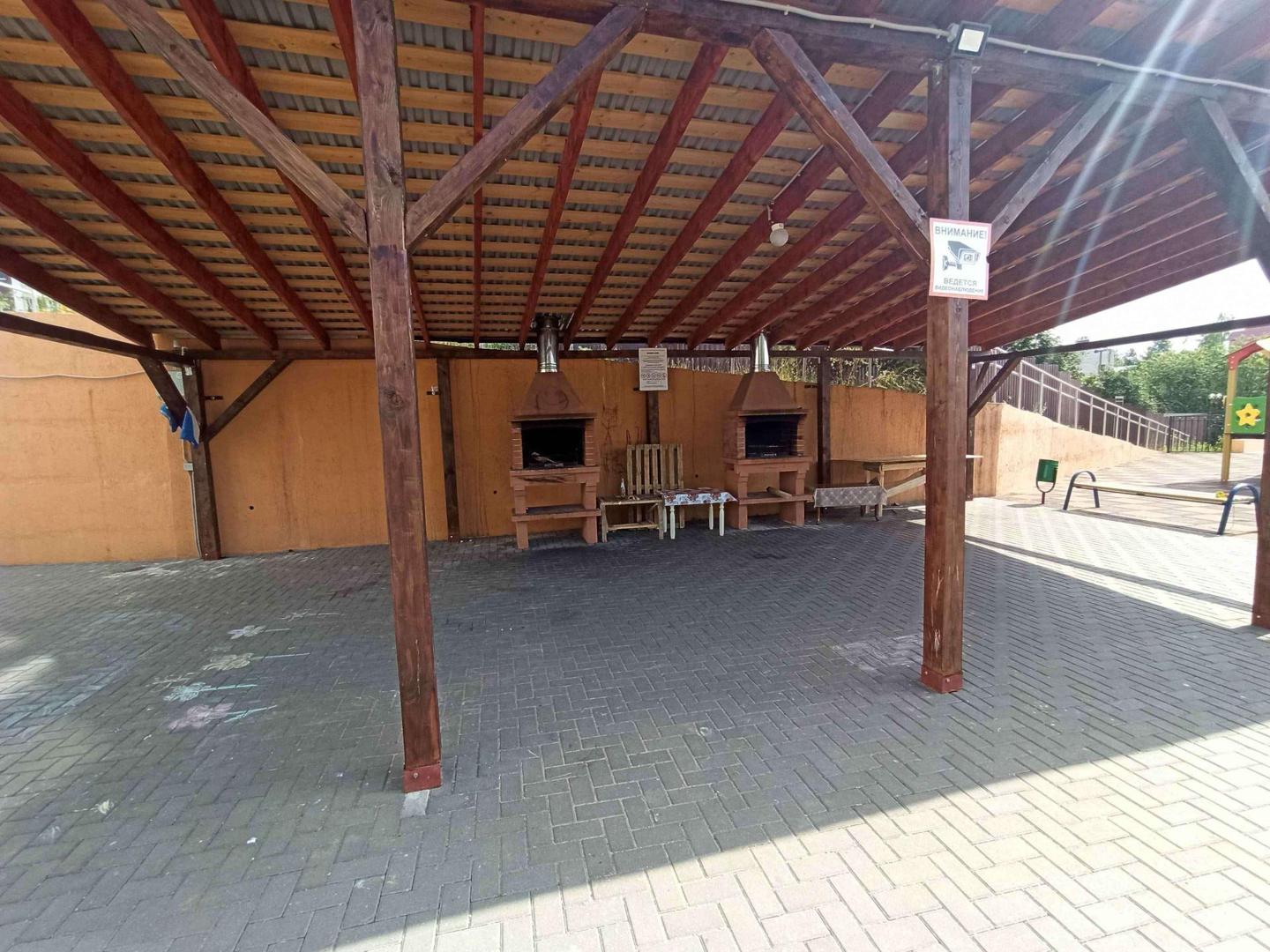 Своя закрытая территория с зоной барбекю, мангалы, детская и спортивная площадка, теннисный стол, собственный пляж с беседками.