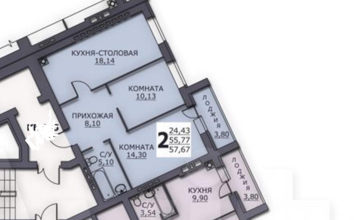 Общая площадь 57.7 м2