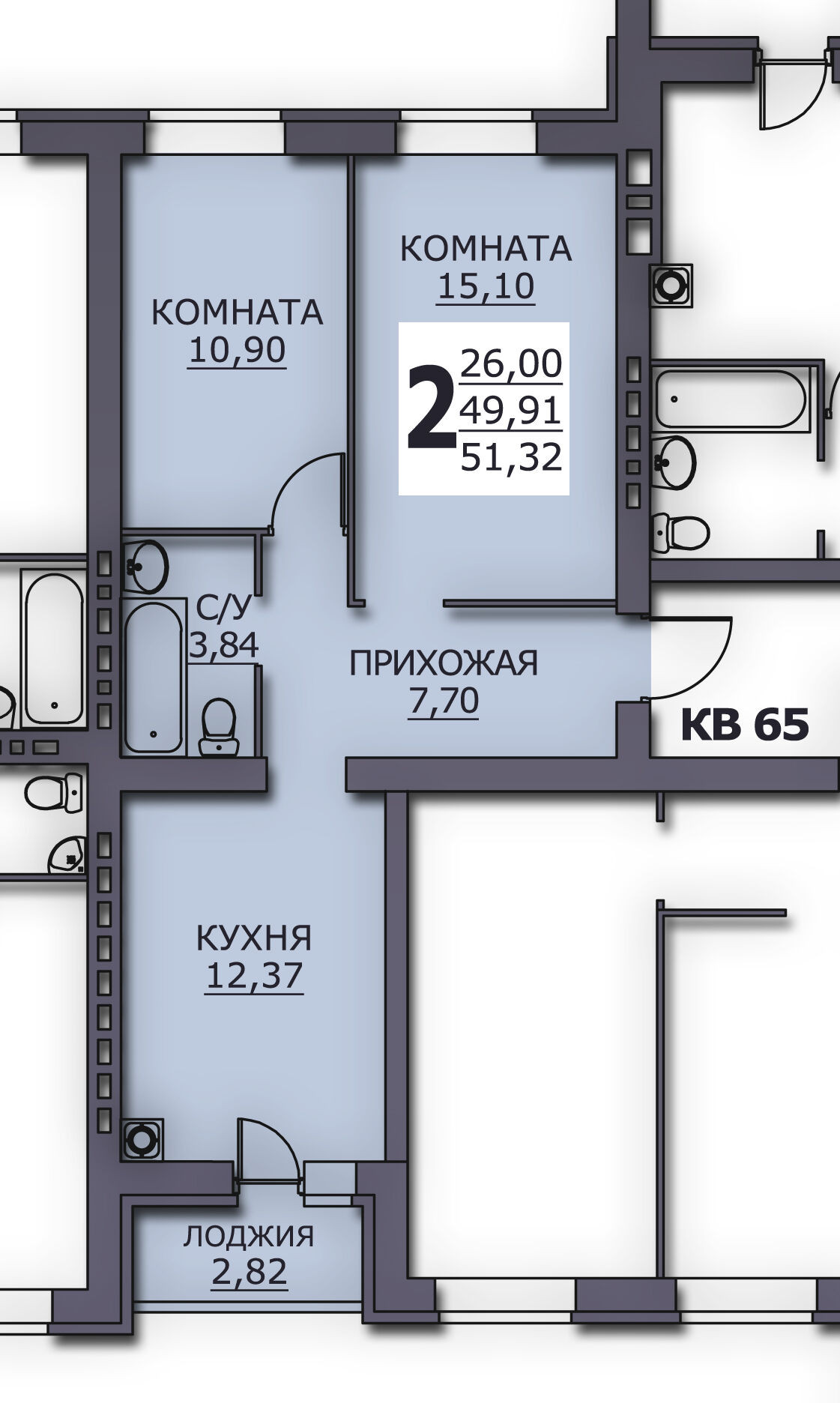 Общая площадь 51.32 м2