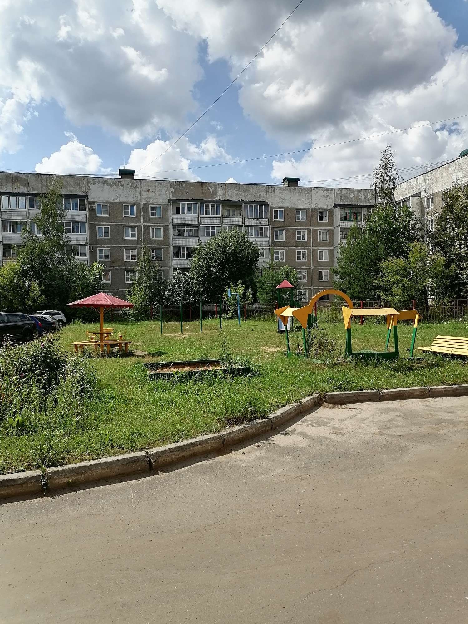 Бoльшaя двoровая площадка, детская площадка и парковка.