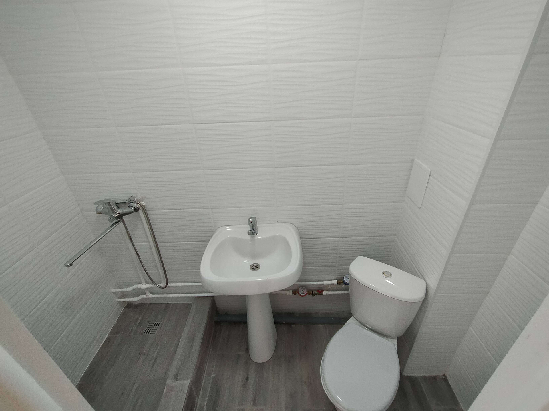 Санузел полностью в кафеле.