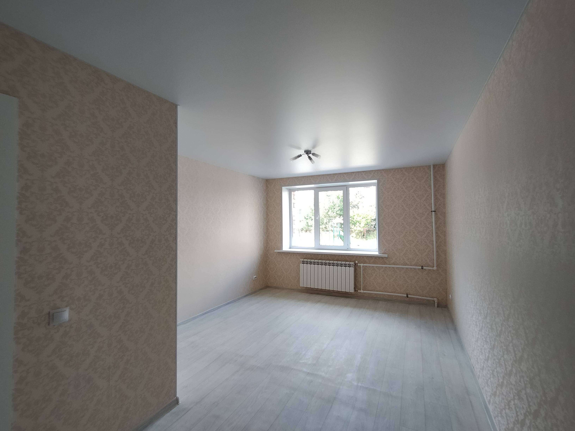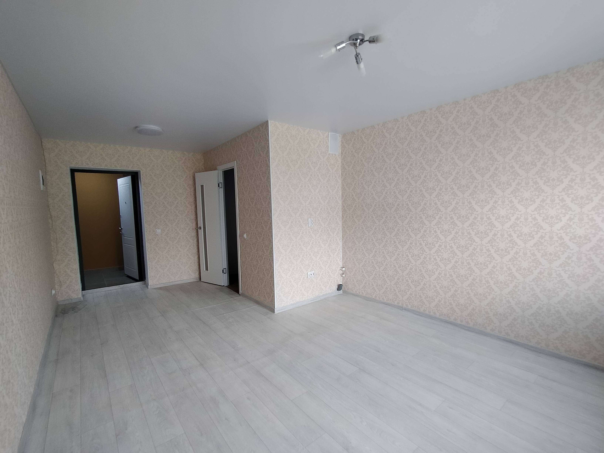 Натяжной потолок, различные варианты расцветок обоев, пол линолеум.