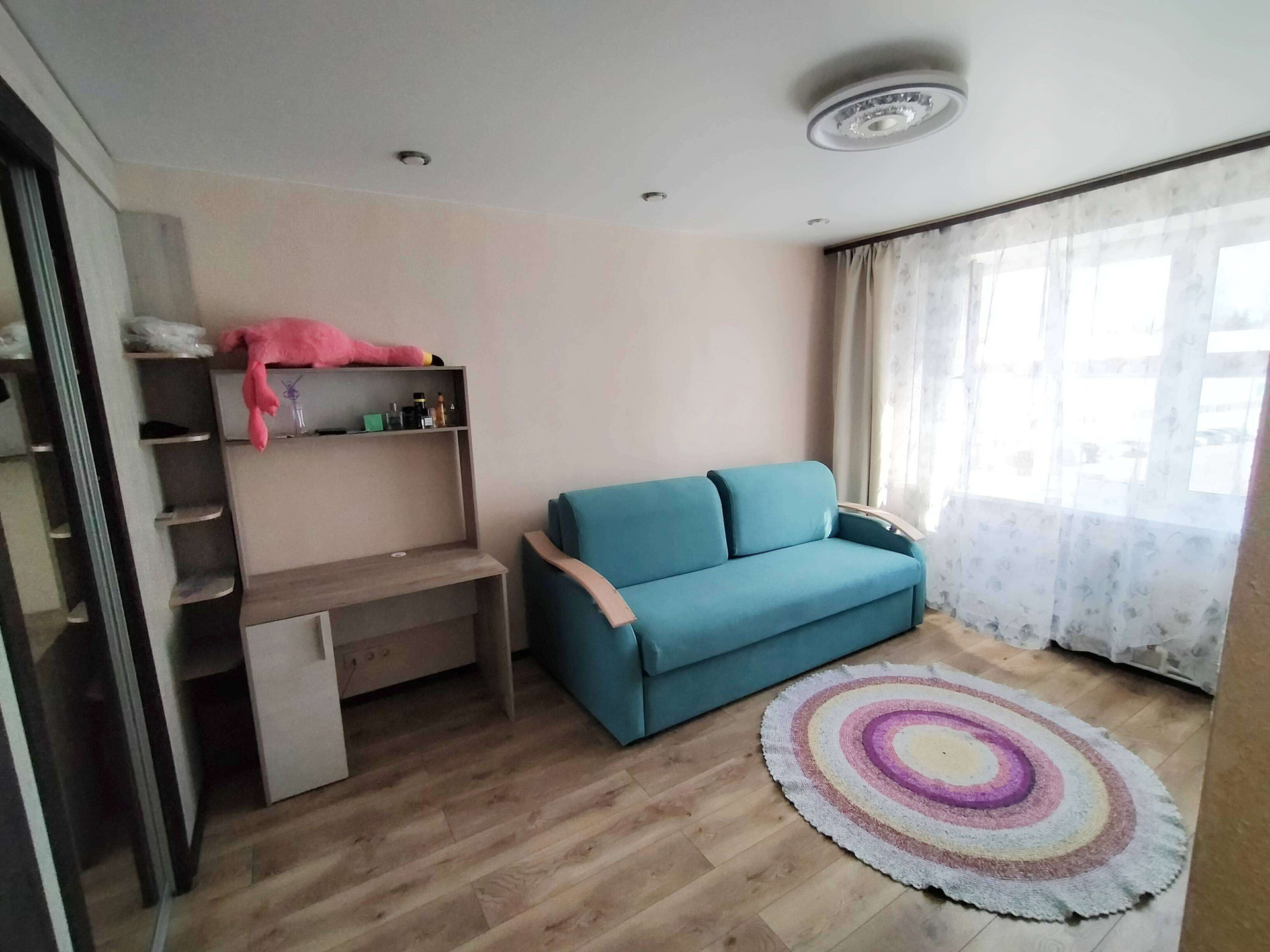 -В комнате встроена просторная гардеробная.