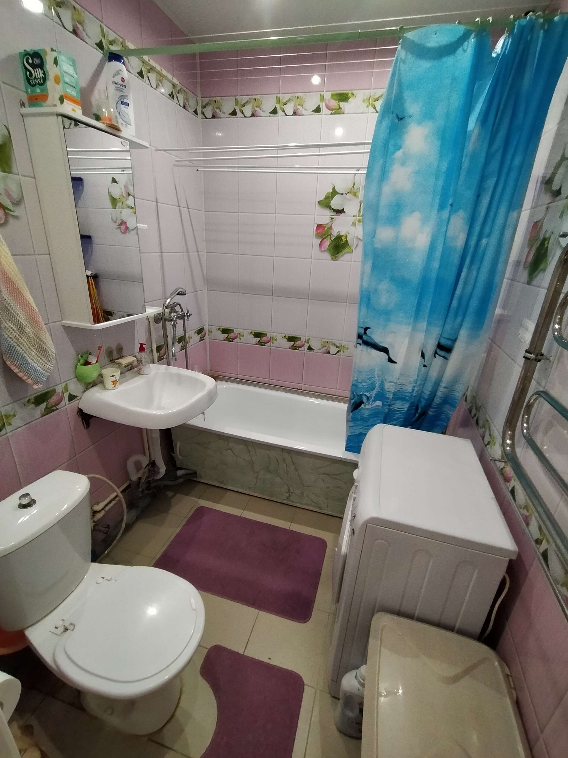 -сан узел совмещённый , 4 кв.м . Помещается всё необходимое.