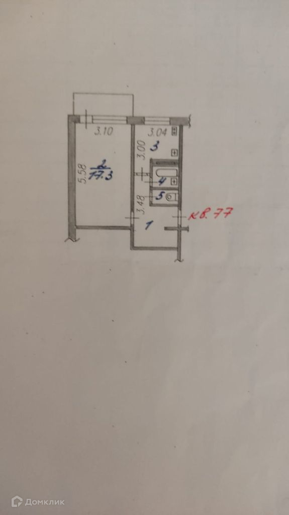 Жилая площадь 17.3 м2
