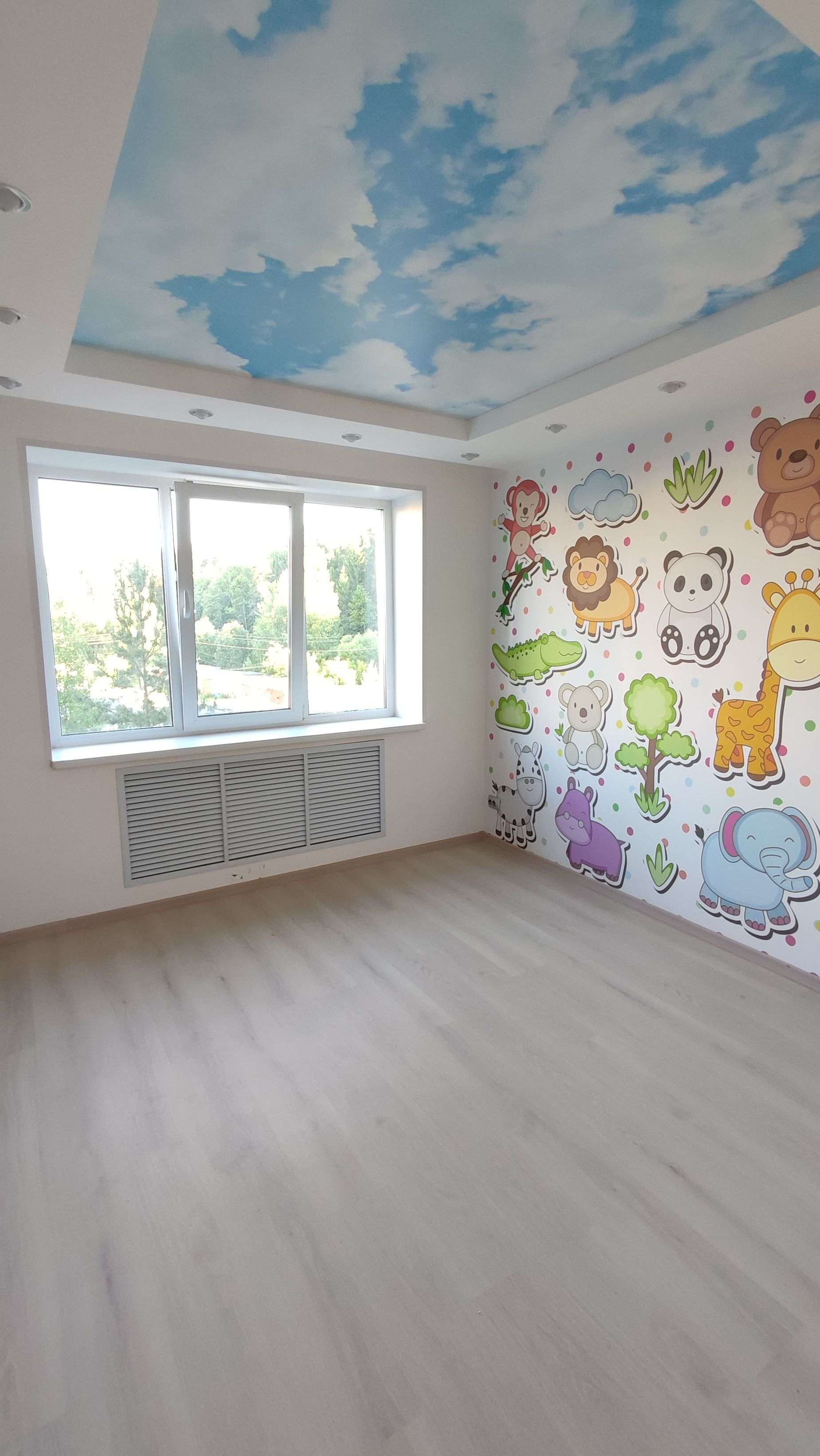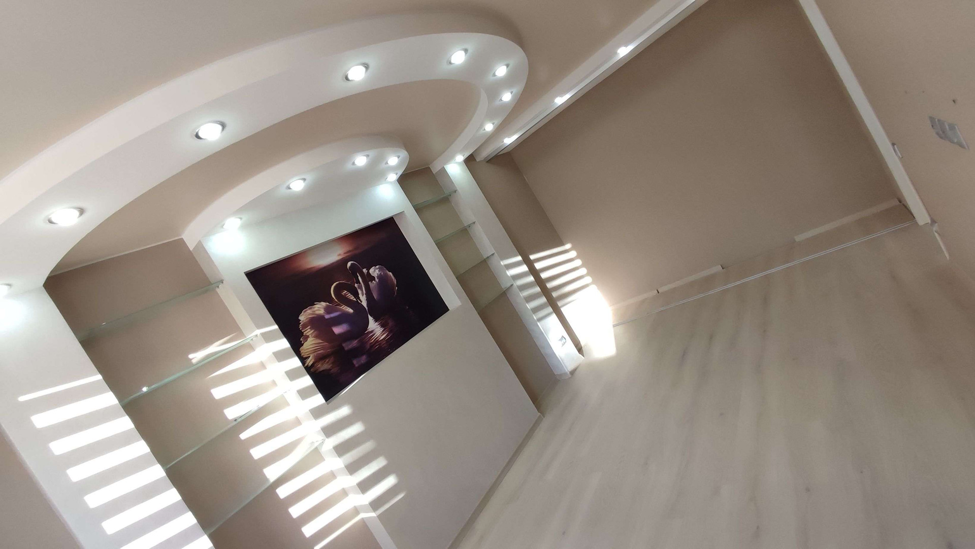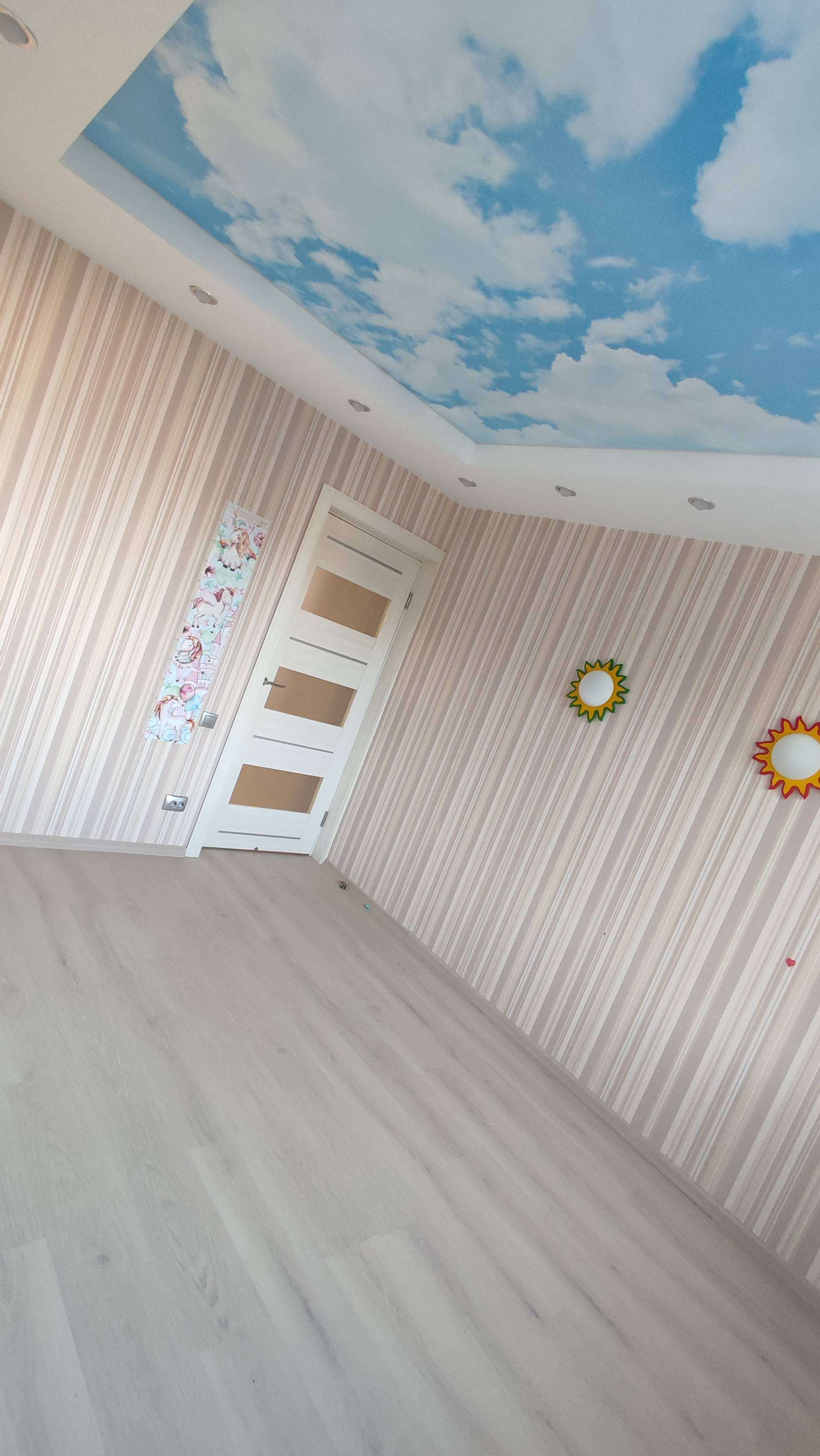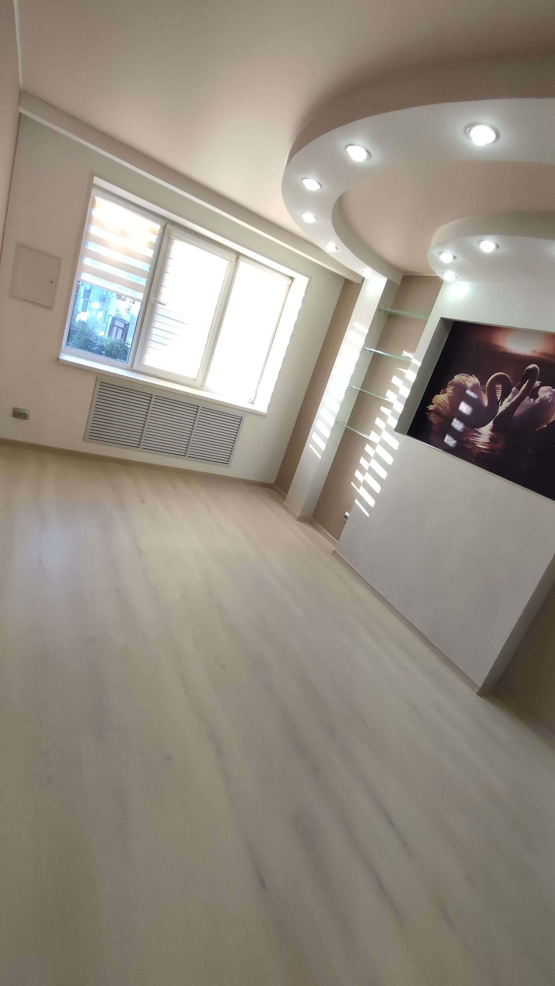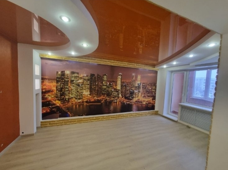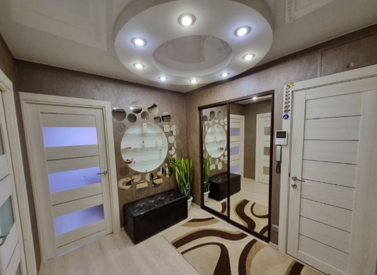 При ремонте выравнивались все стены, пол (плитка, ламинат), тёплый пол в санузле, окна и балконы ПВХ, натяжные многоуровневые потолки с различного рода освещением, батареи находятся в специальных декоративных зонах, что не мешает им выполнять свою функцию. В квартире установлена охрана. Видеодомофон.