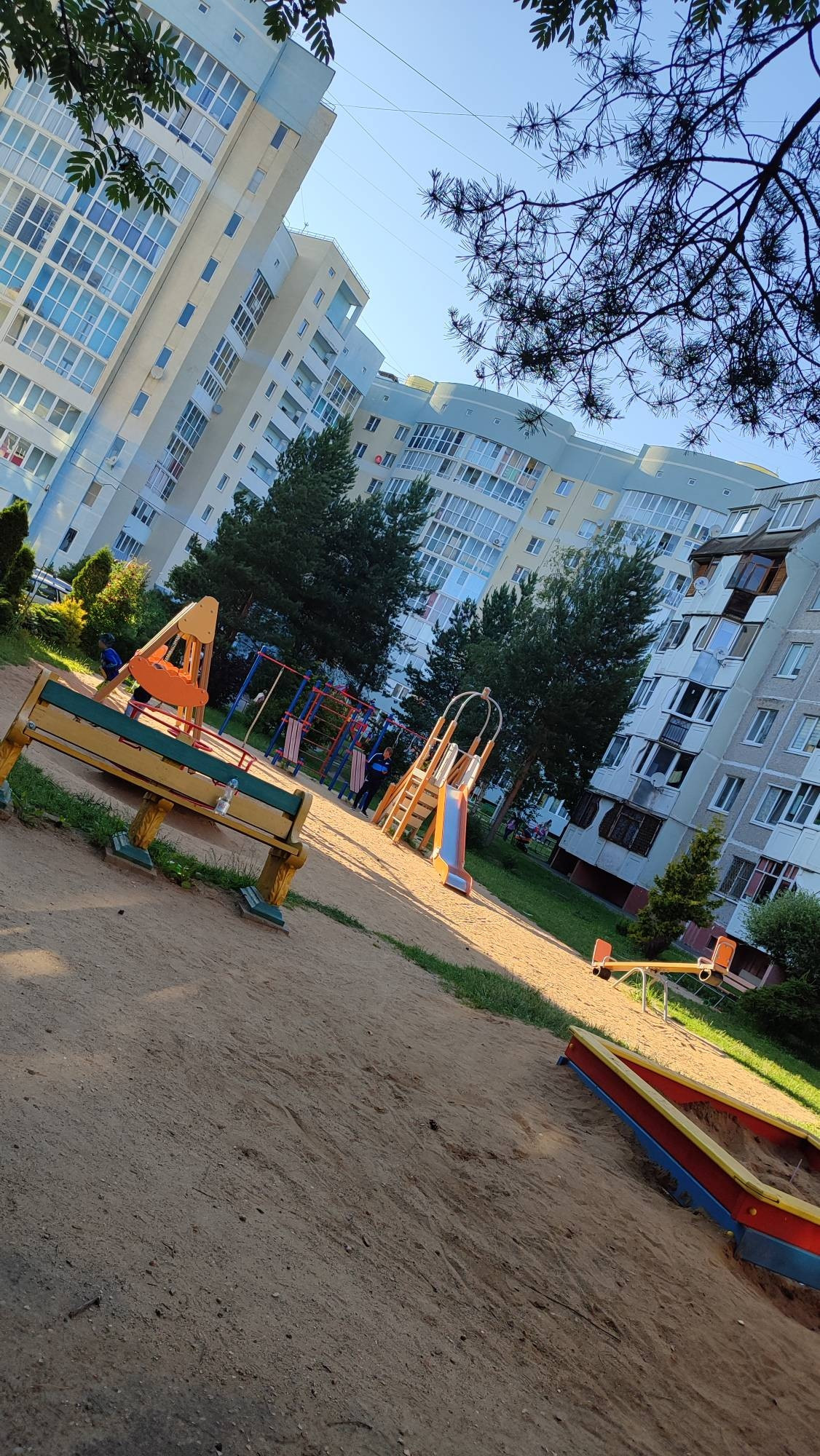 Две детских площадки во дворе дома, детский сад через дорогу, школа в шаговой доступности.
